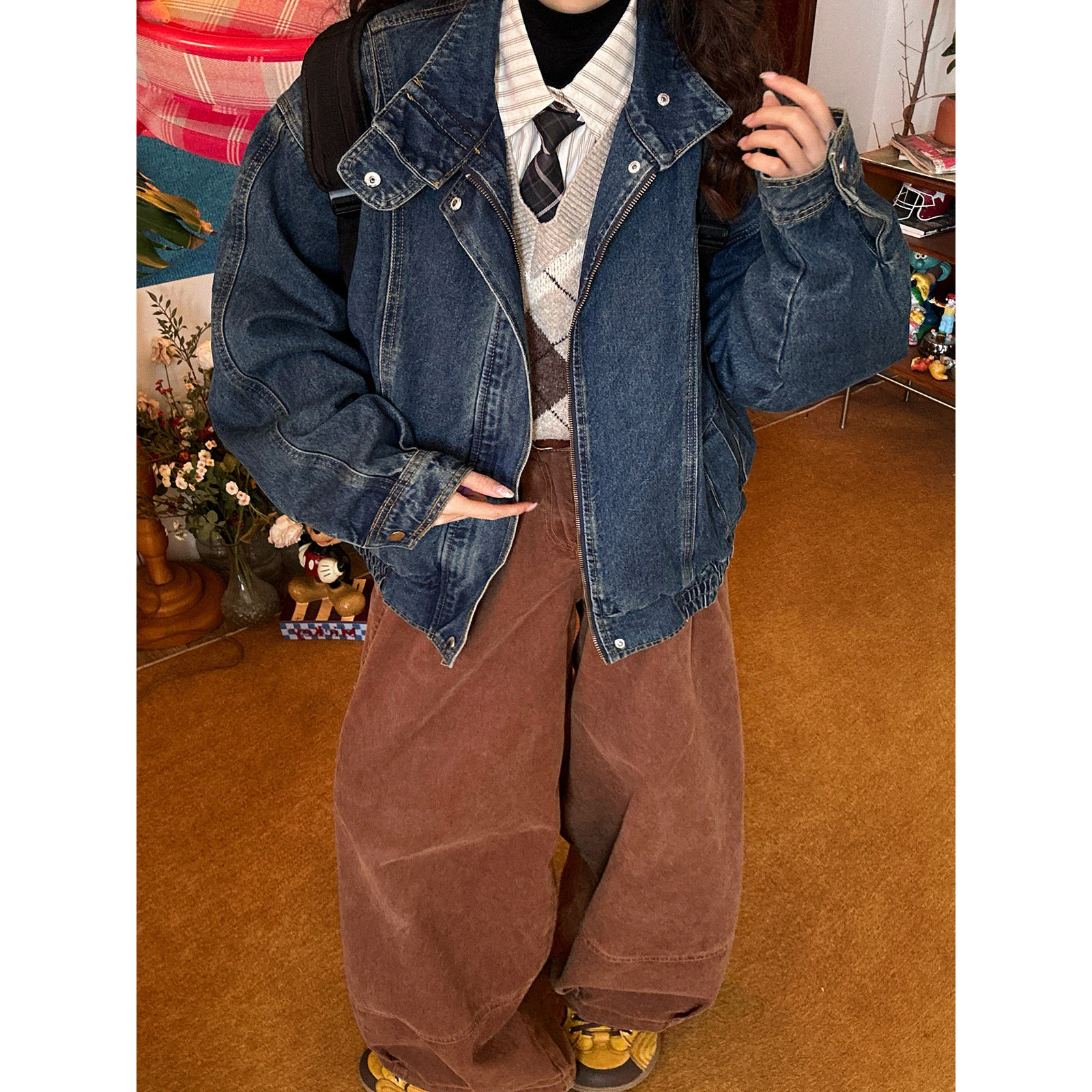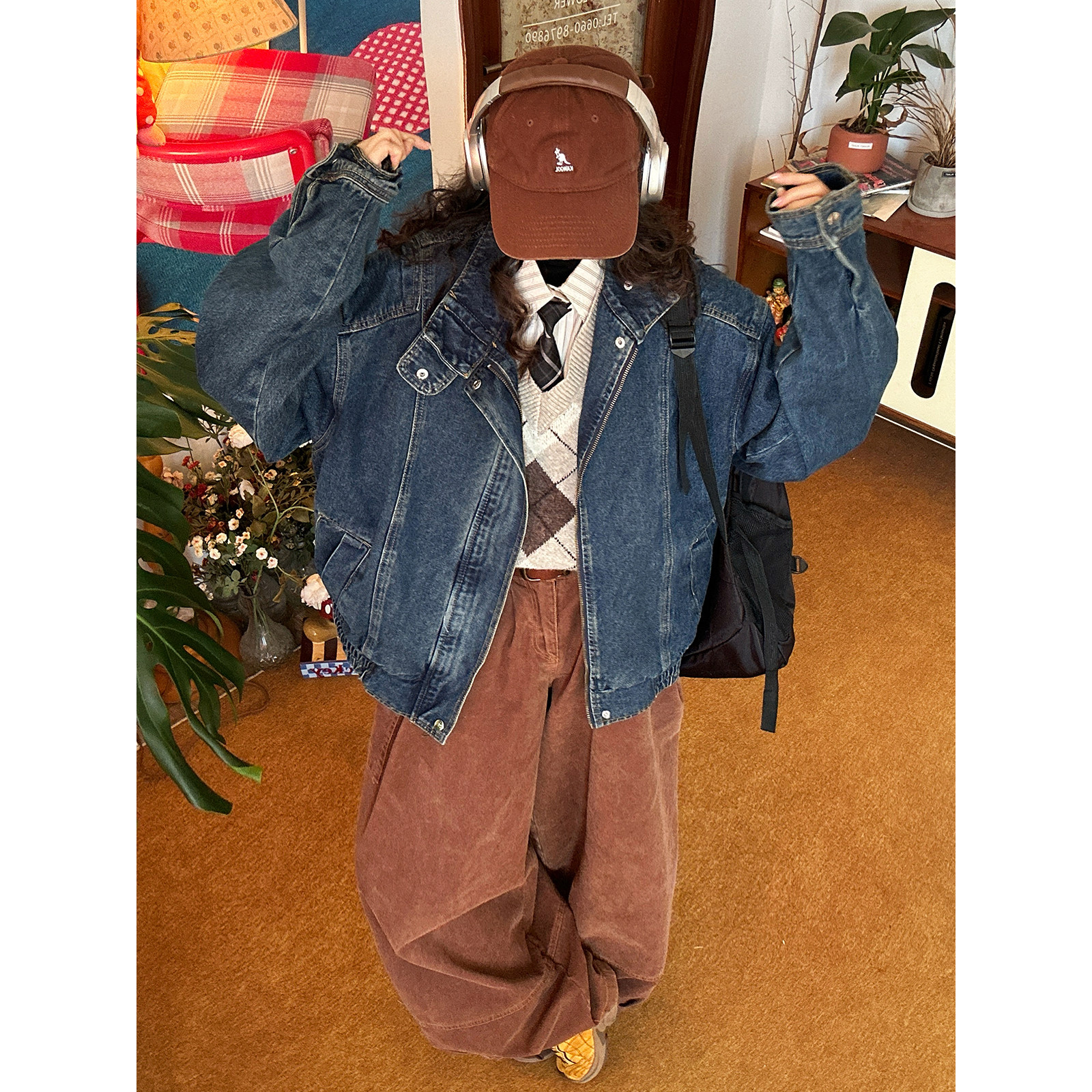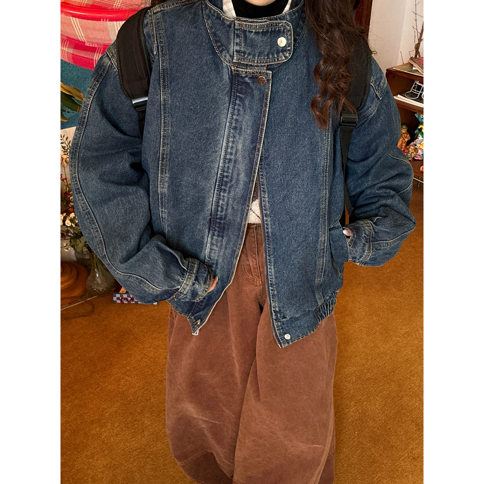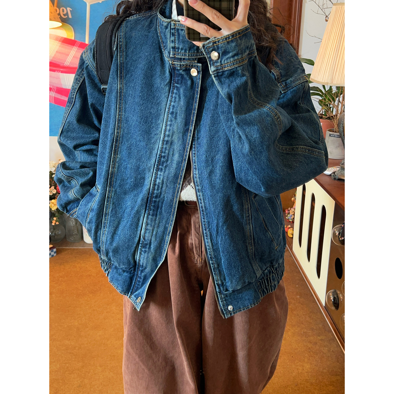C2自制/美式复古立领牛仔外套男女同款短款飞行夹克外套春季新款