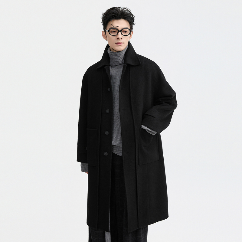 伯爵先生25秋冬中长款羊毛羊绒大衣外套男士立体剪裁设计翻领毛呢