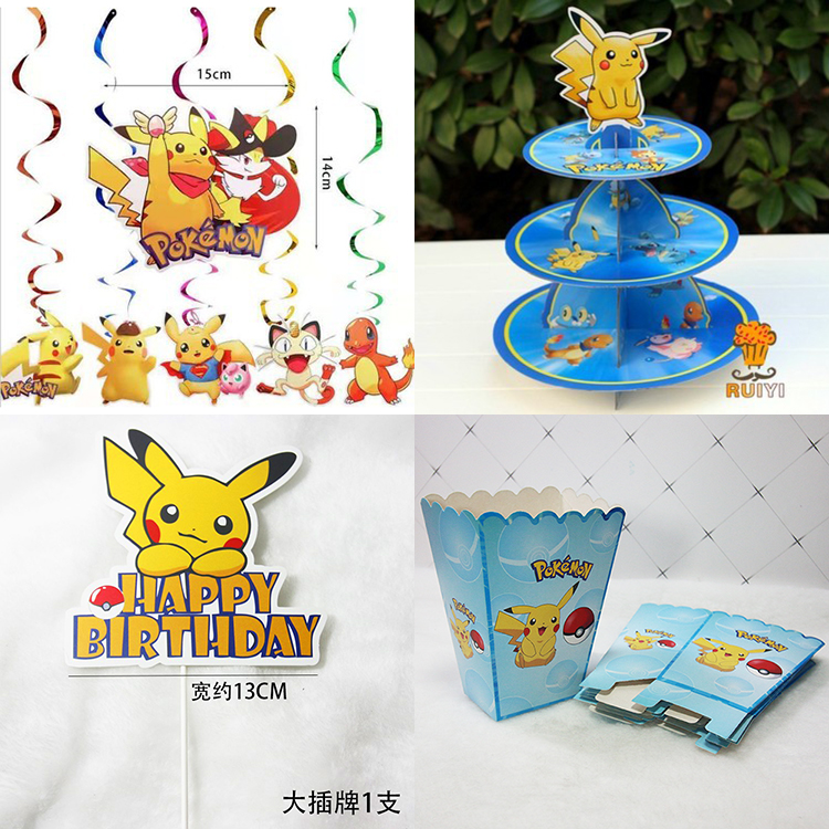 卡通可爱甜品台插旗蛋糕装饰甜品儿童派对餐具盘子宠物小精灵桌布