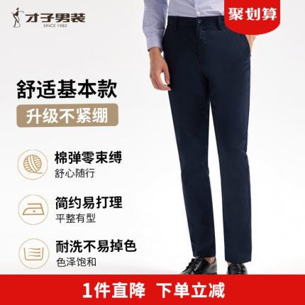 才子奥莱黑色休闲裤男2025春秋新款修身长裤品牌职业上班商务裤子