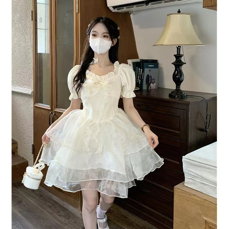 夏季公主裙伪娘变装甜美三层纱裙蓬蓬蝴蝶结小清新女装大佬连衣裙