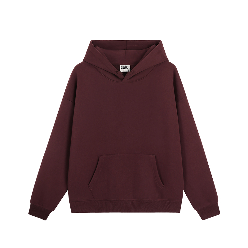 无性别穿搭美式街头风酒红色连帽卫衣女高级感显白秋冬加绒款上衣