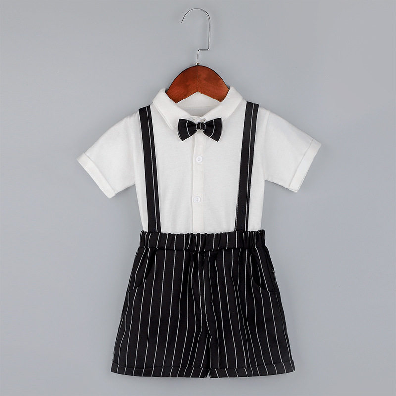 新款 儿童礼服夏装韩版短袖背带裤套装男童六一主持合唱表演服