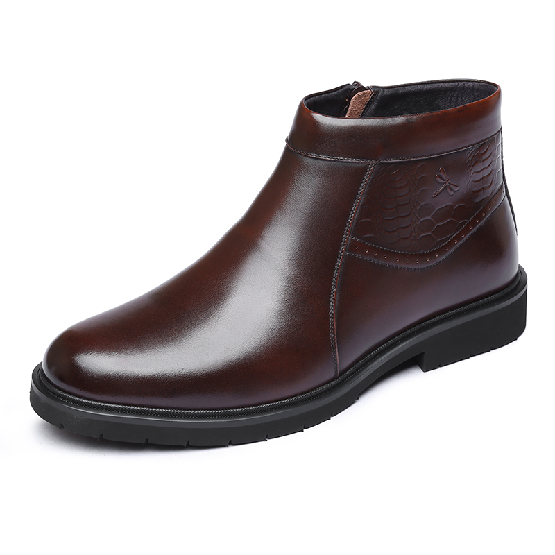 红蜻蜓冬季皮鞋男真皮高帮男鞋冬加绒保暖鞋纯皮棉鞋精品男士鞋子