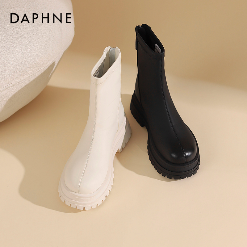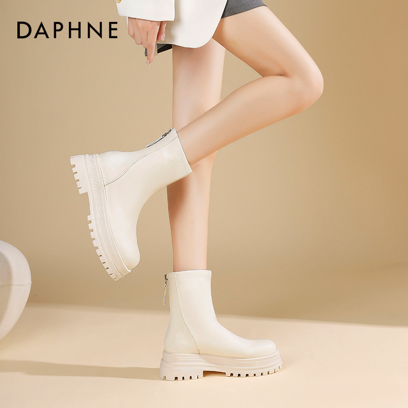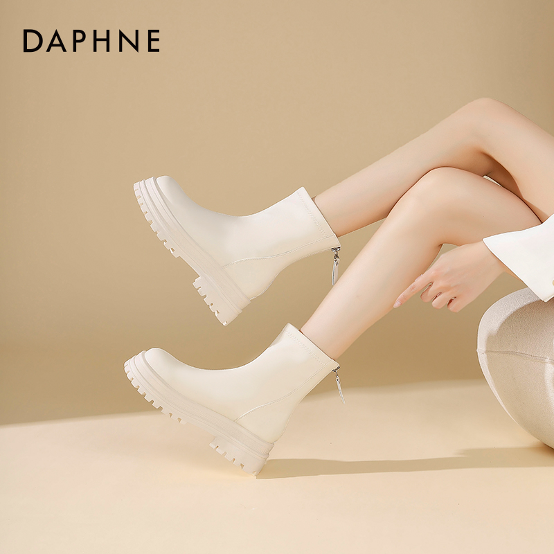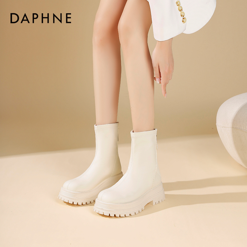 达芙妮白色短靴女2025新款秋冬短靴子女单靴女鞋瘦瘦靴厚底马丁靴