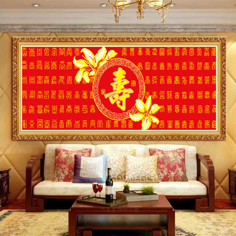 百寿图5D水晶钻石画满钻砖石贴画卧室黏钻十字绣2023新款客厅寿字