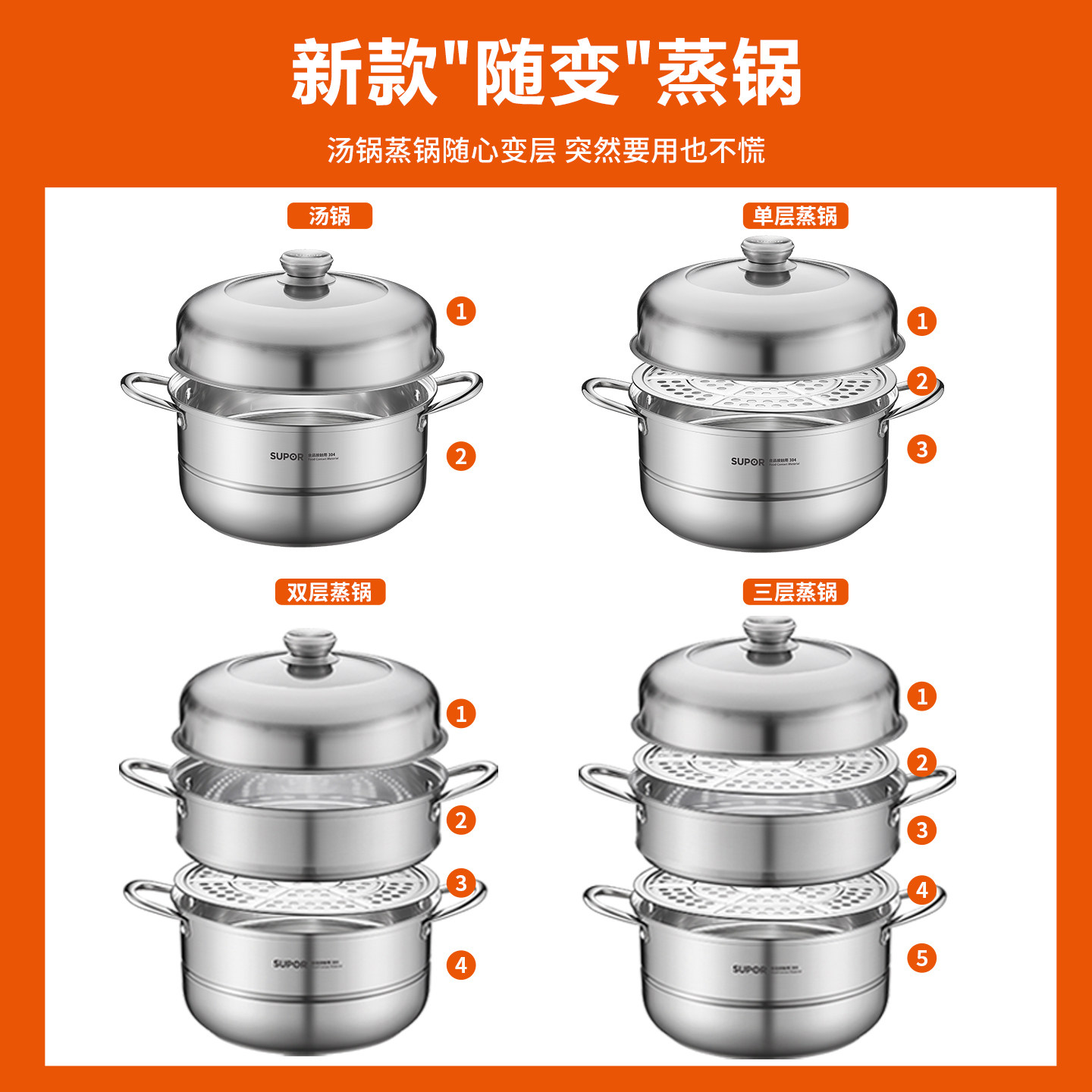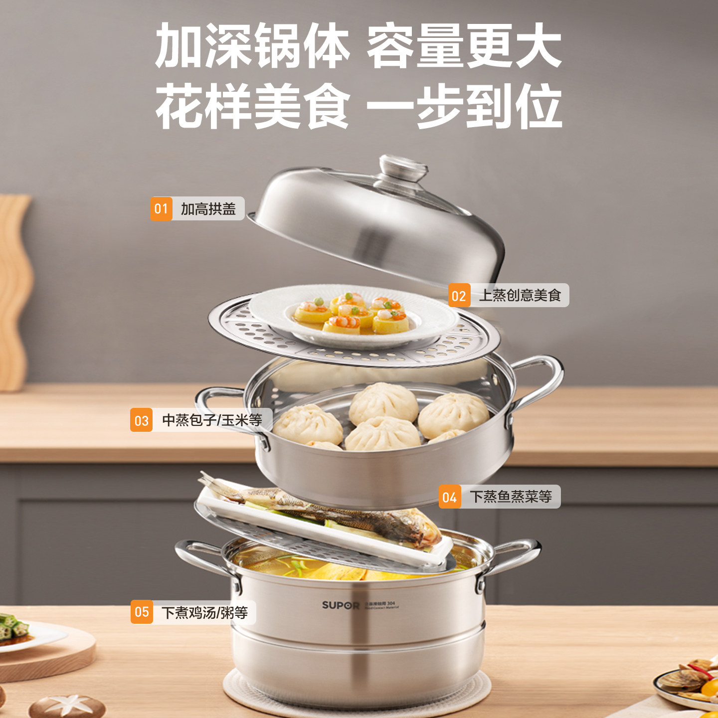 【新升级】苏泊尔304不锈钢蒸锅