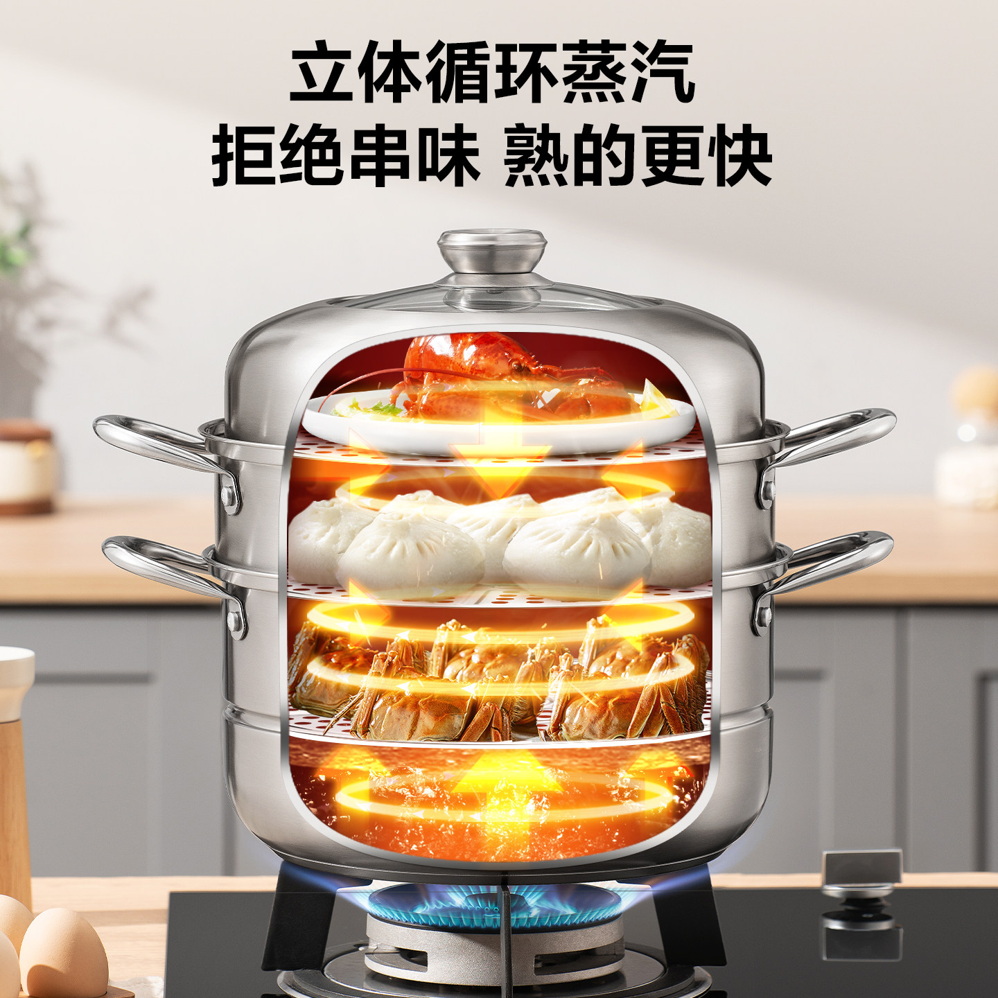 【新升级】苏泊尔蒸锅家用304不锈钢加厚双层三层多层不挑灶蒸煮