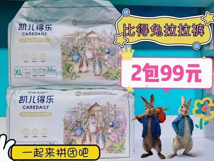 凯儿得乐比得兔拉拉裤尿不湿透气成长裤彼得兔全包臀一体裤2包