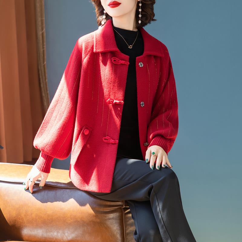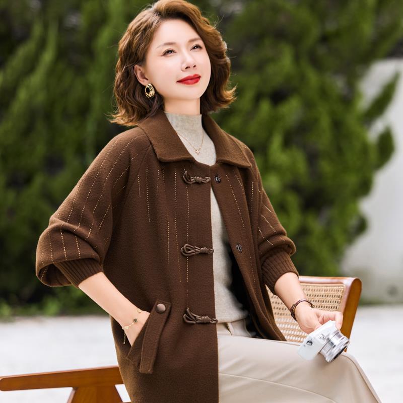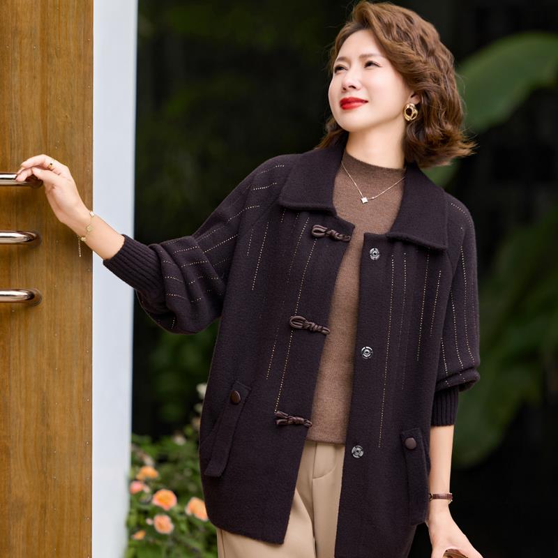 妈妈秋装洋气休闲外套2025新款中老年女装秋冬轻中式盘扣针织呢子