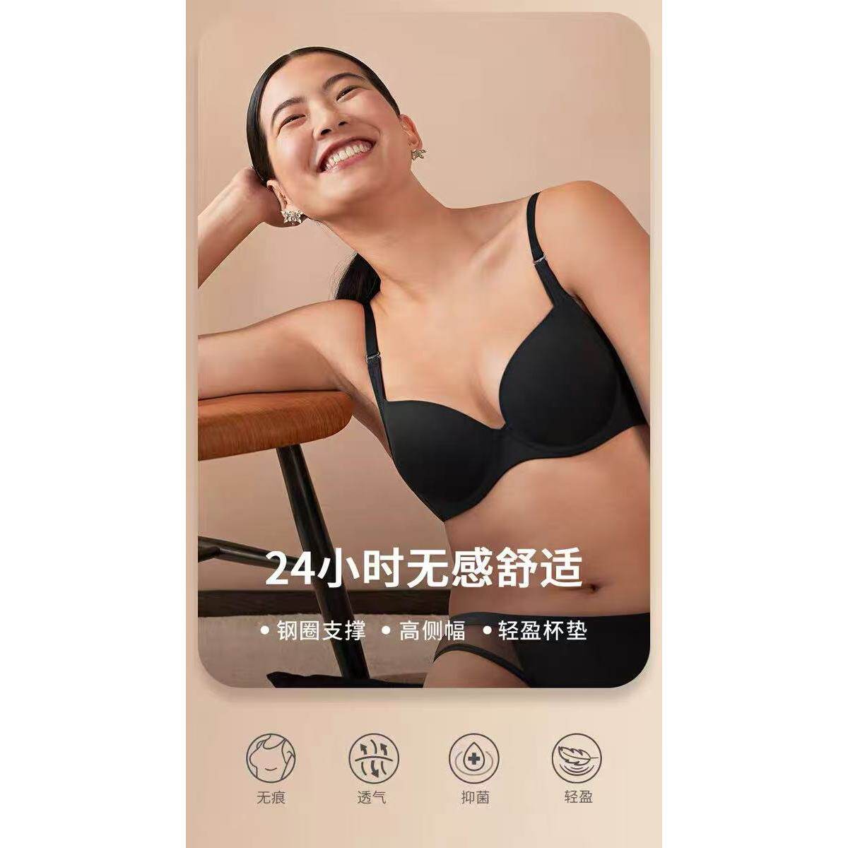 黛安正品新款光面无痕内衣抗菌大胸交叉U型美背薄款文胸16-8788