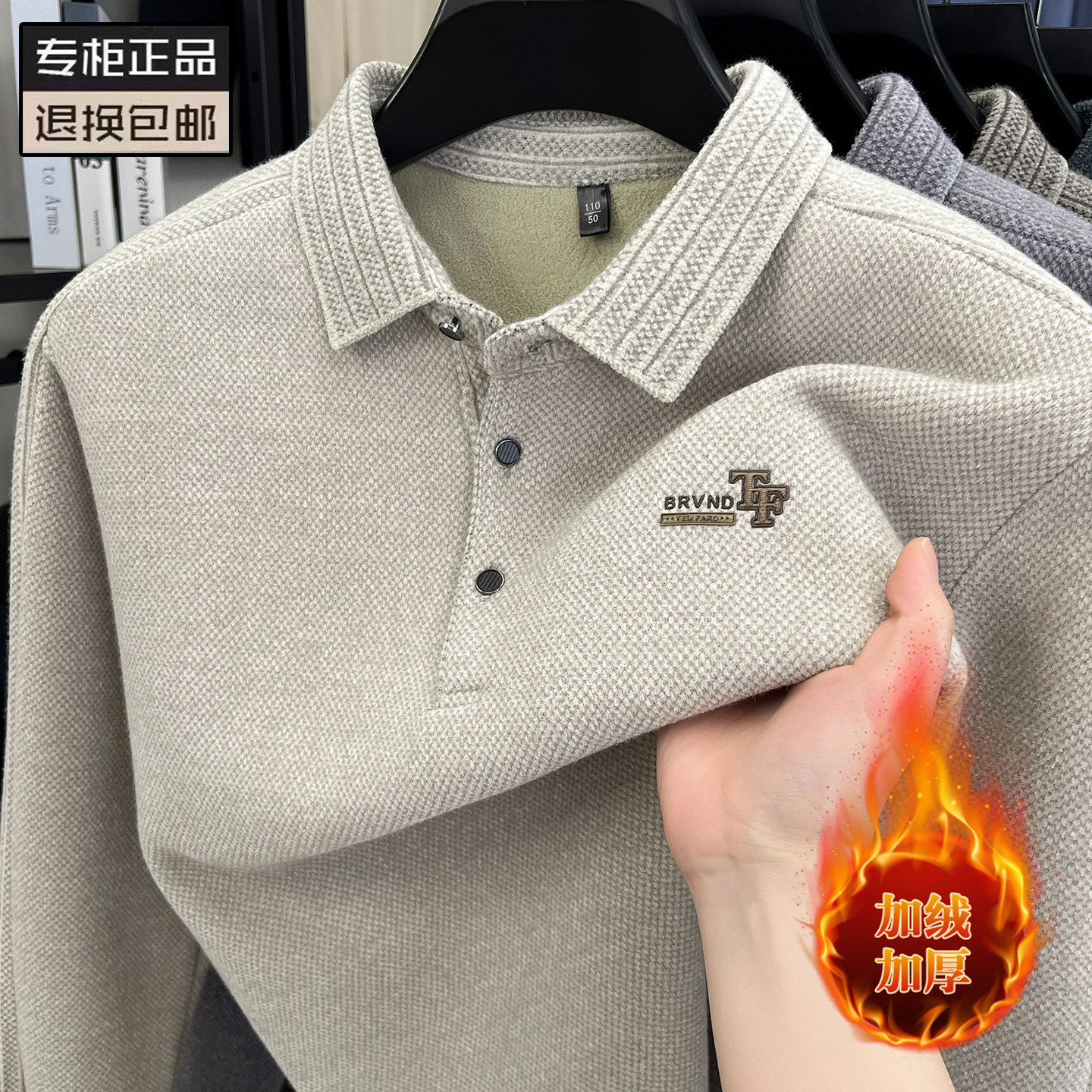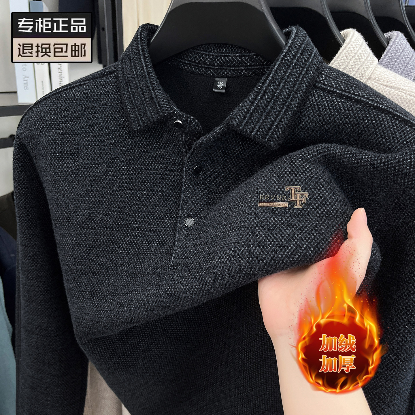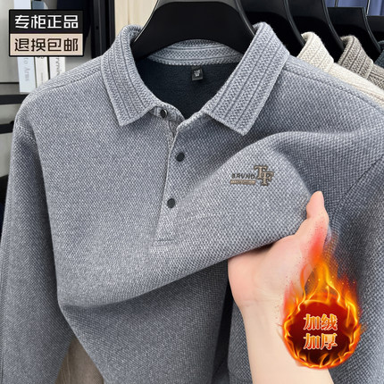 高端加绒保暖雪尼尔男毛衣秋冬加厚翻领爸爸打底POLO衫休闲上衣