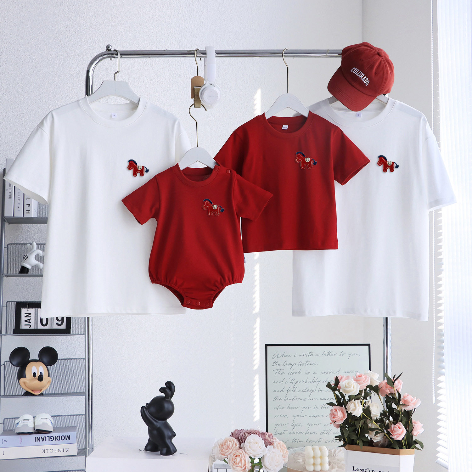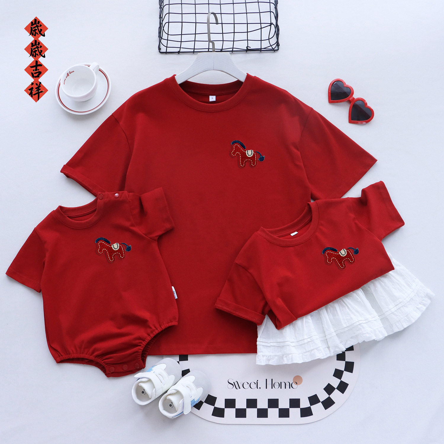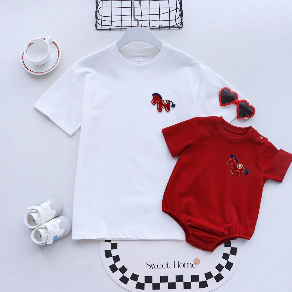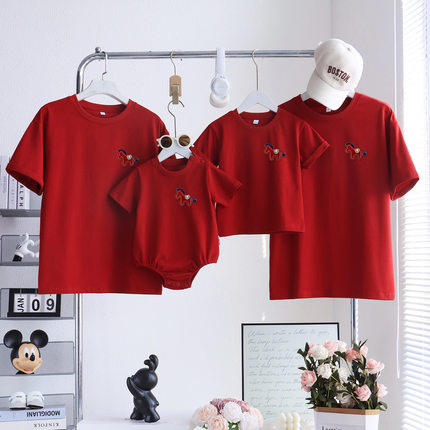 马年全家福亲子装一家三口夏季短袖2026新款婴儿爬服母女洋气t恤