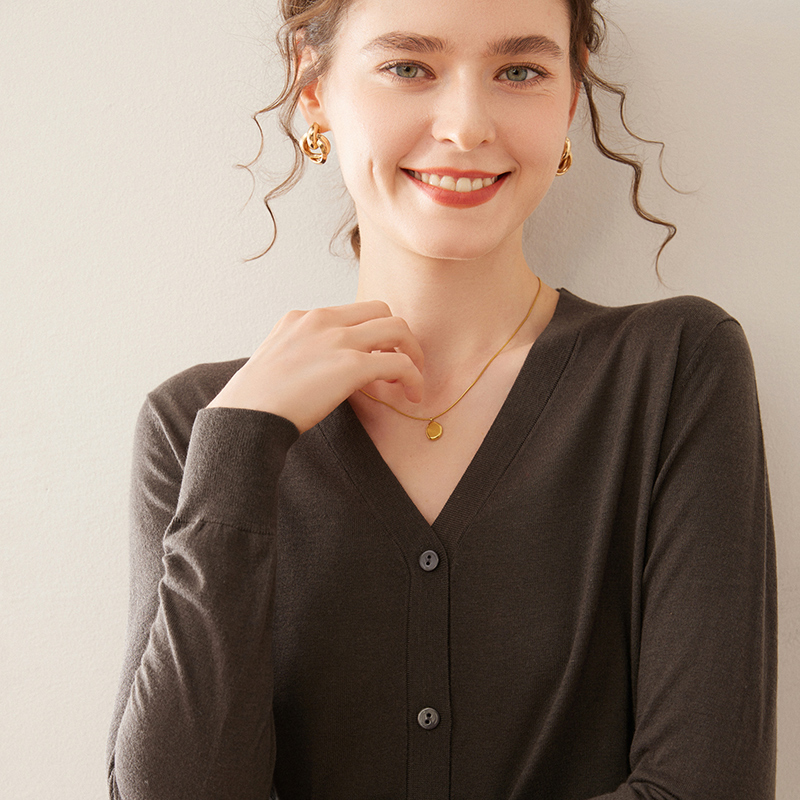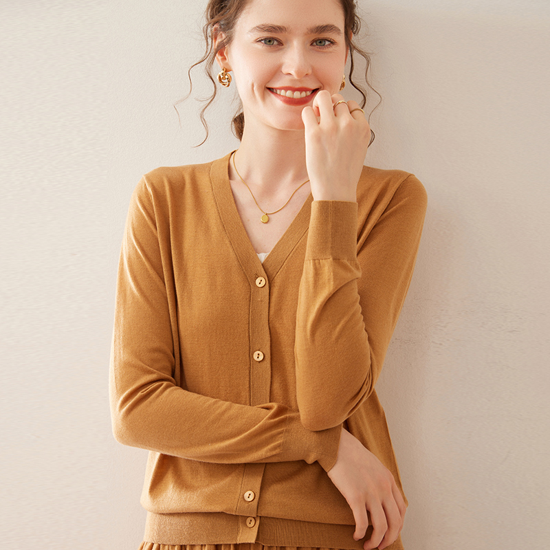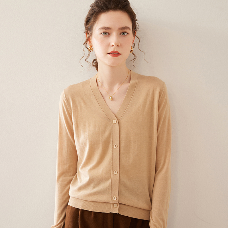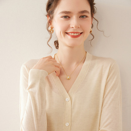 精纺亲肤桑蚕丝V领针织开衫女春夏新款宽松薄款短外套防晒空调衫