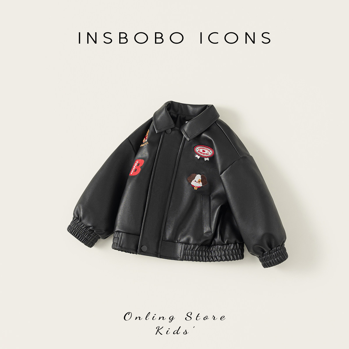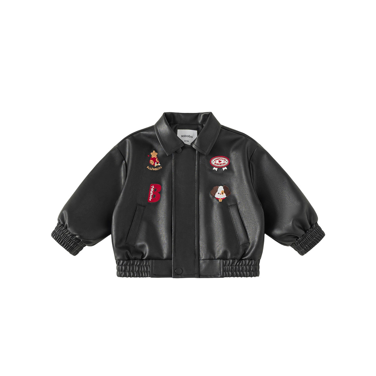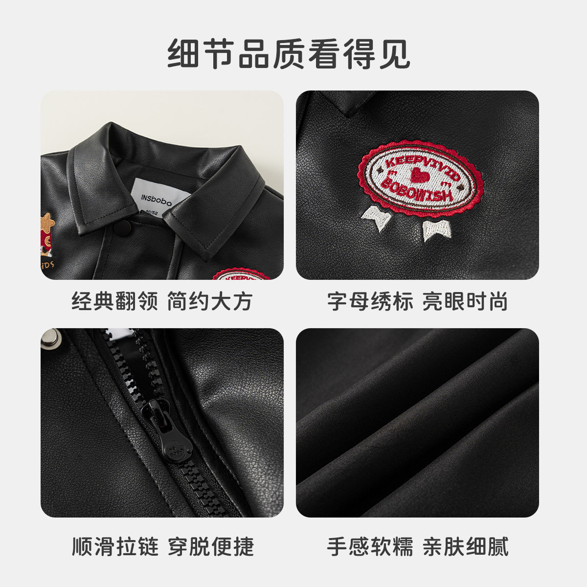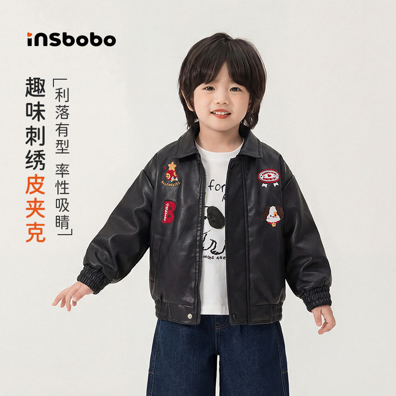 INSbobo儿童翻领可爱刺绣皮衣