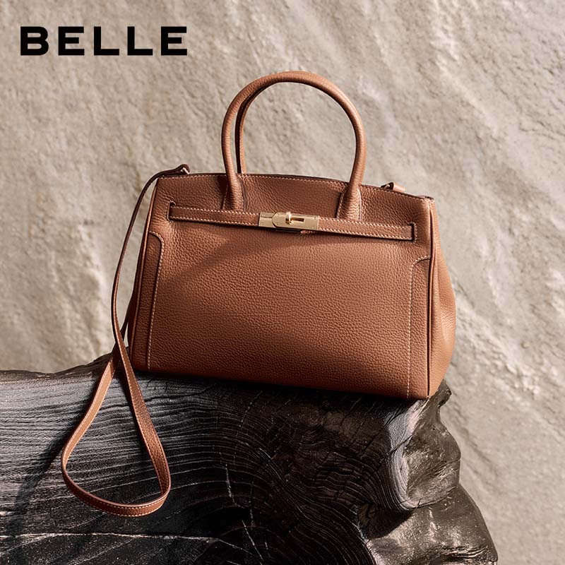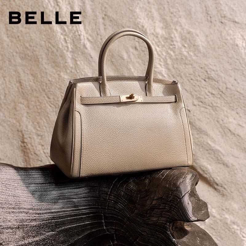百丽包女2025新款鎏金岁月铂金包单肩斜挎真皮手提包大号X7385DX5