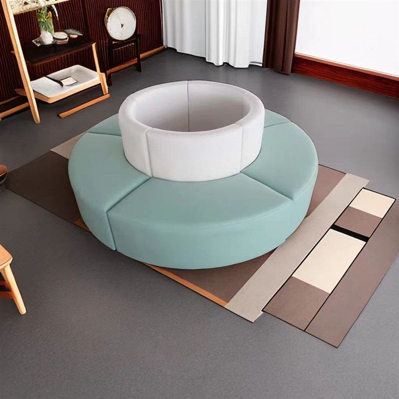 早教幼儿园医院银行大厅休息等候区绕圆柱软包沙发凳创意圆形卡座