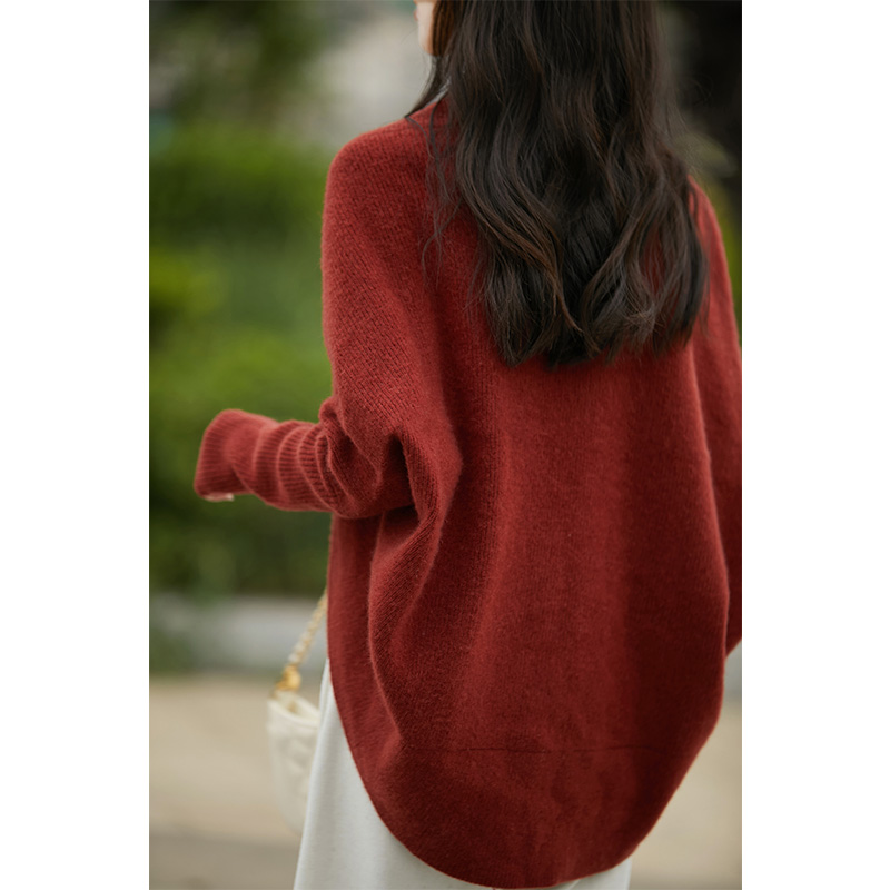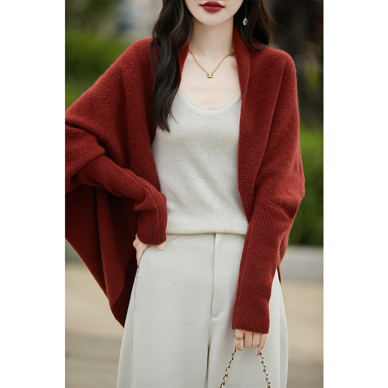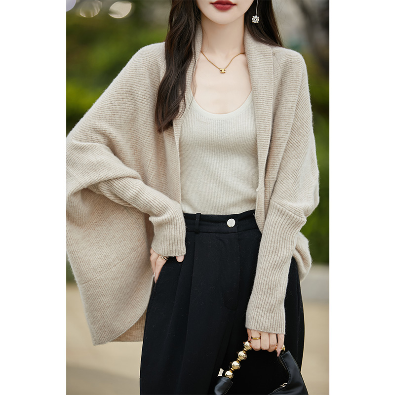 100%纯羊毛开衫女茧型针织披肩宽松外搭蝙蝠袖斗篷毛衣洋气外套