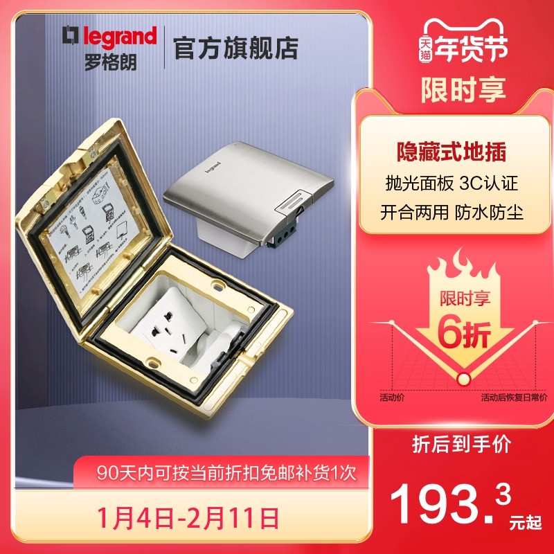 罗格朗地插隐形全铜地插嵌入式隐藏式防水多功能五孔插座tcl