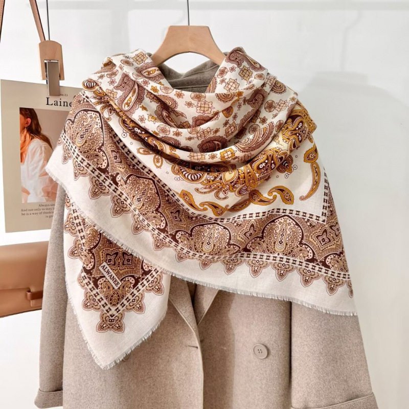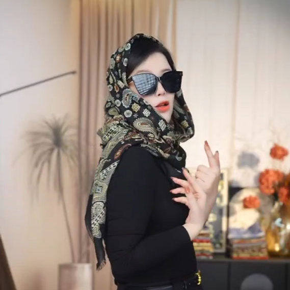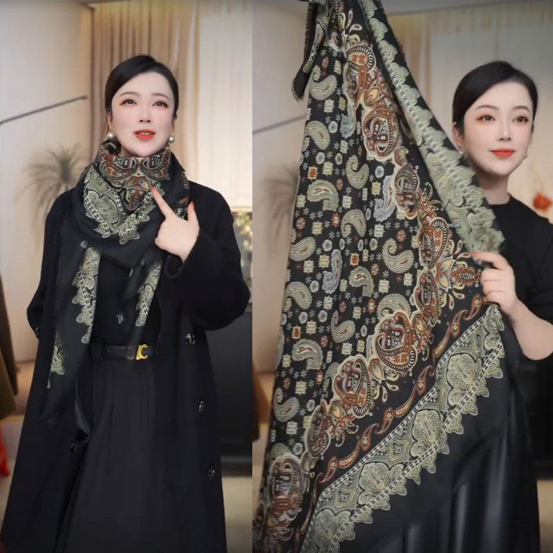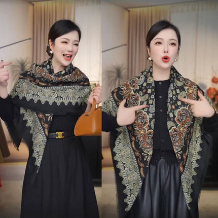 摩登风情优质棉质135*135左右轻奢百搭方巾围巾时尚气质优雅披肩