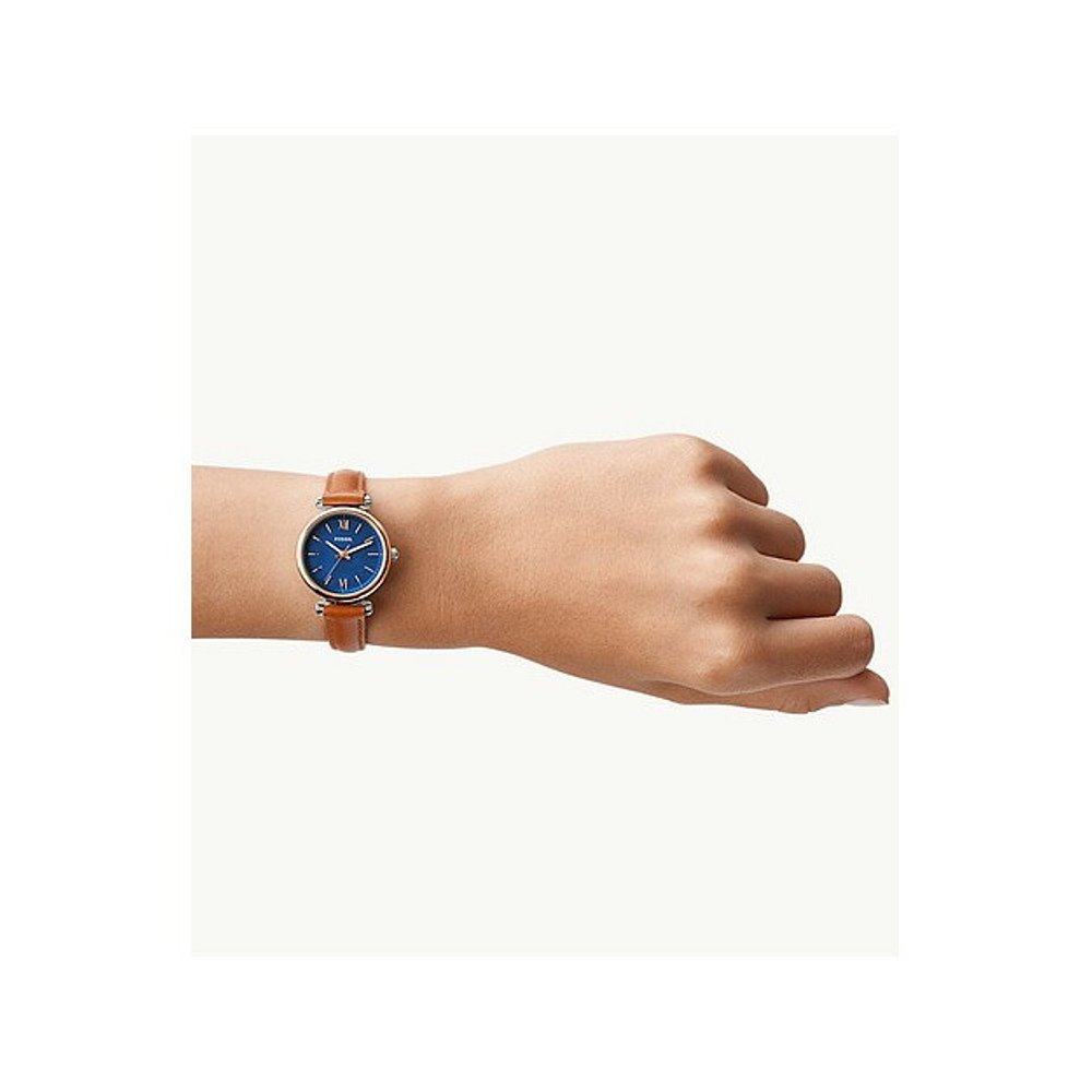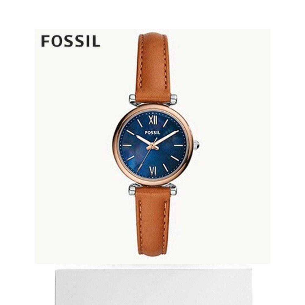 日本直邮Fossil CARLIE MINI 三针棕褐色皮革手表 ES4701 女士指