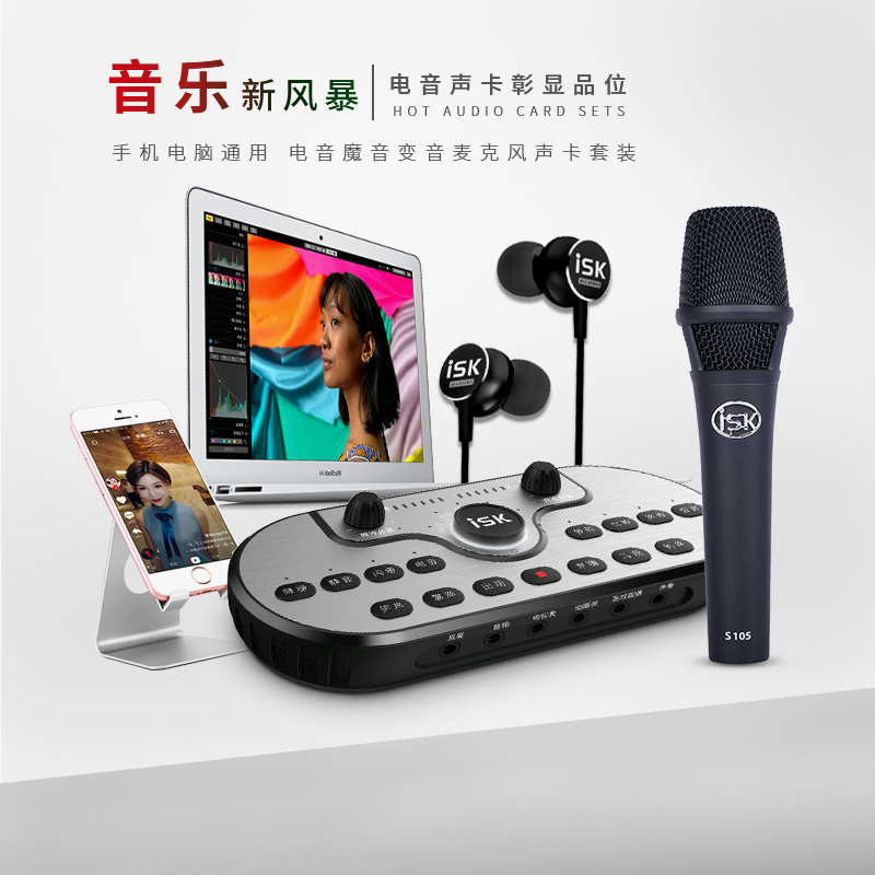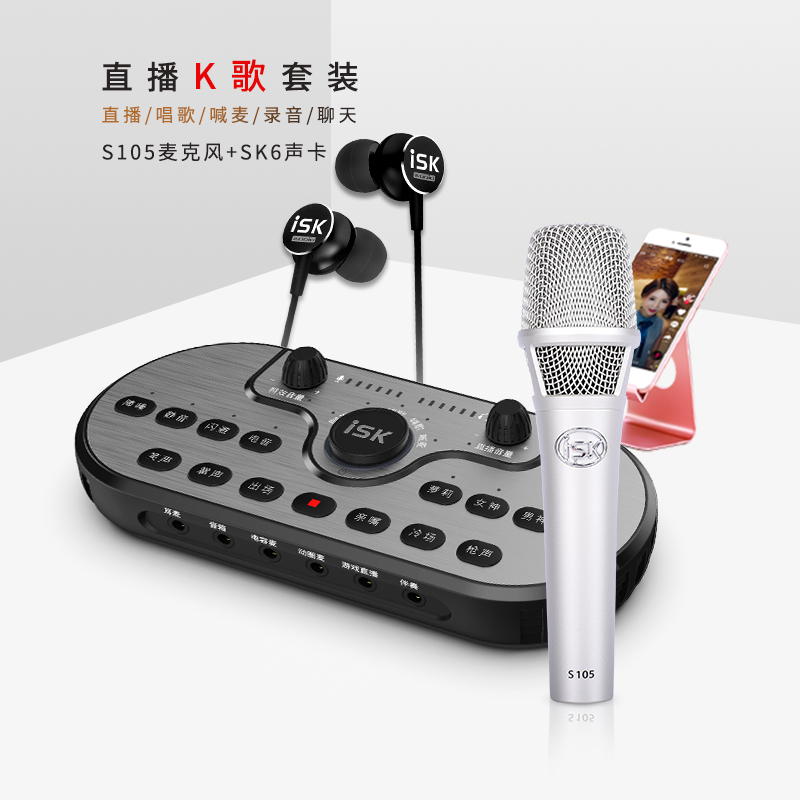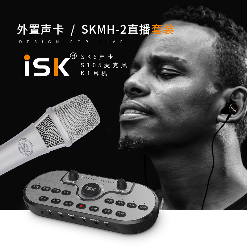 ISK SKMH-2麦克风外置声卡套装全民k歌快手电容麦手机台式电脑笔记本通用唱歌录音设备主播直播喊麦话筒全套