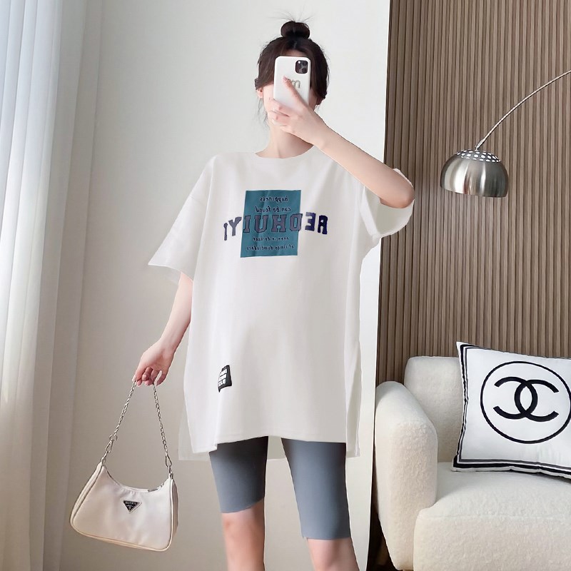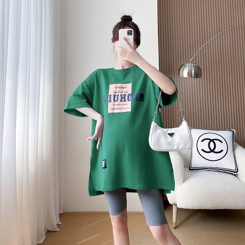 大码孕妇短袖t恤夏季中长款宽松纯棉上衣女韩版百搭显瘦200斤潮妈