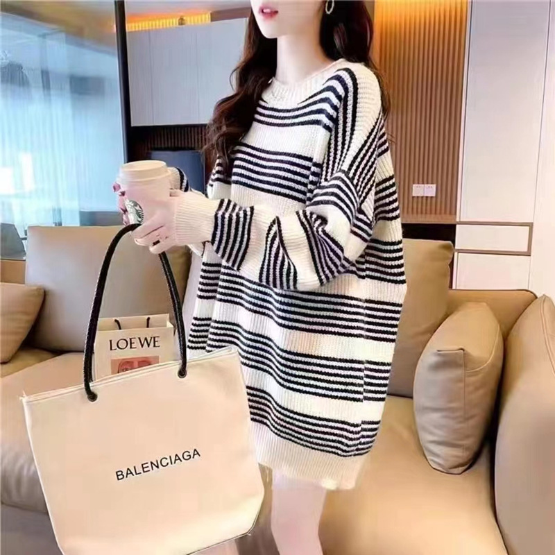 中长款慵懒风毛衣女秋冬2023新款韩版宽松显瘦休闲条纹针织上衣服