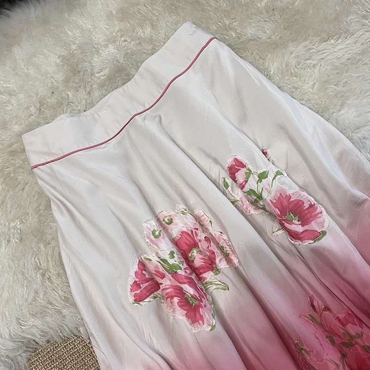英国渐变色真丝半身裙清仓MS家素绉缎面大摆裙中长款桑蚕丝A字裙