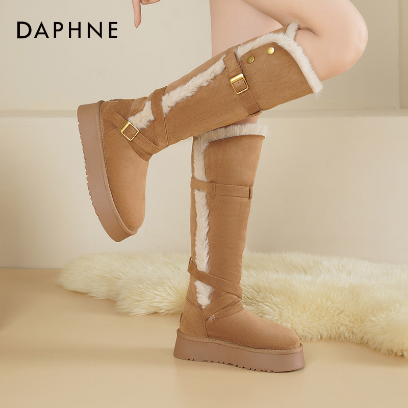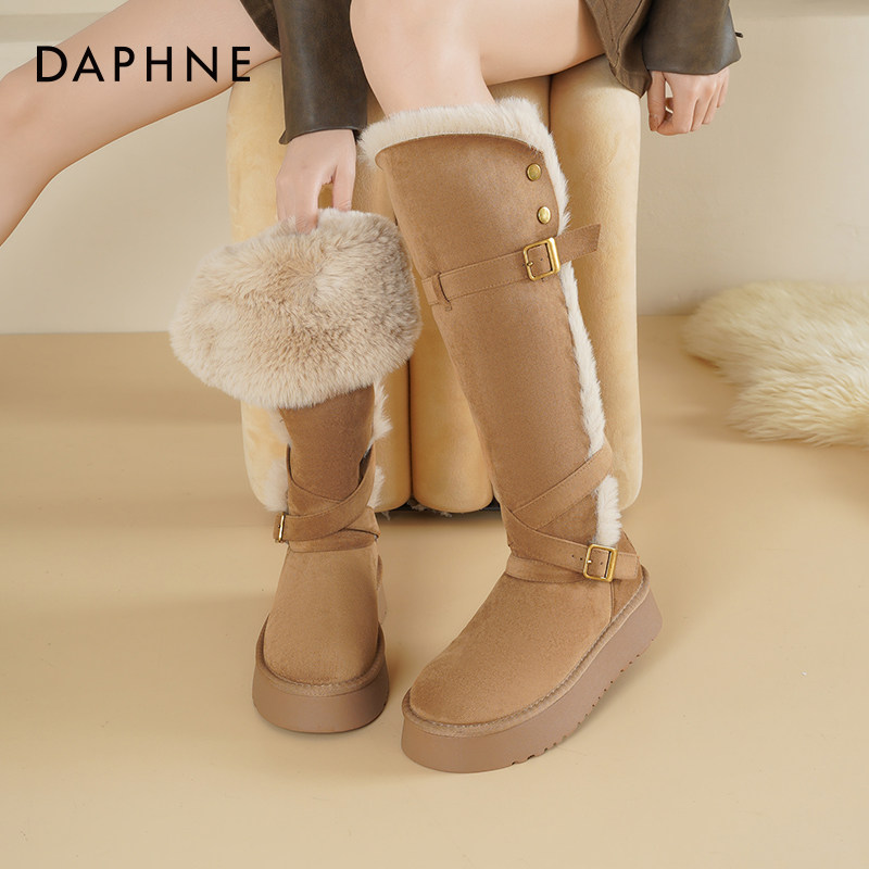 达芙妮厚底雪地靴女2025新款冬季加绒翻毛靴子保暖长筒靴加厚棉鞋