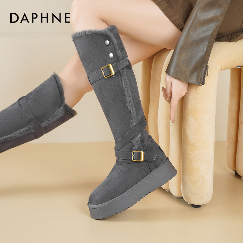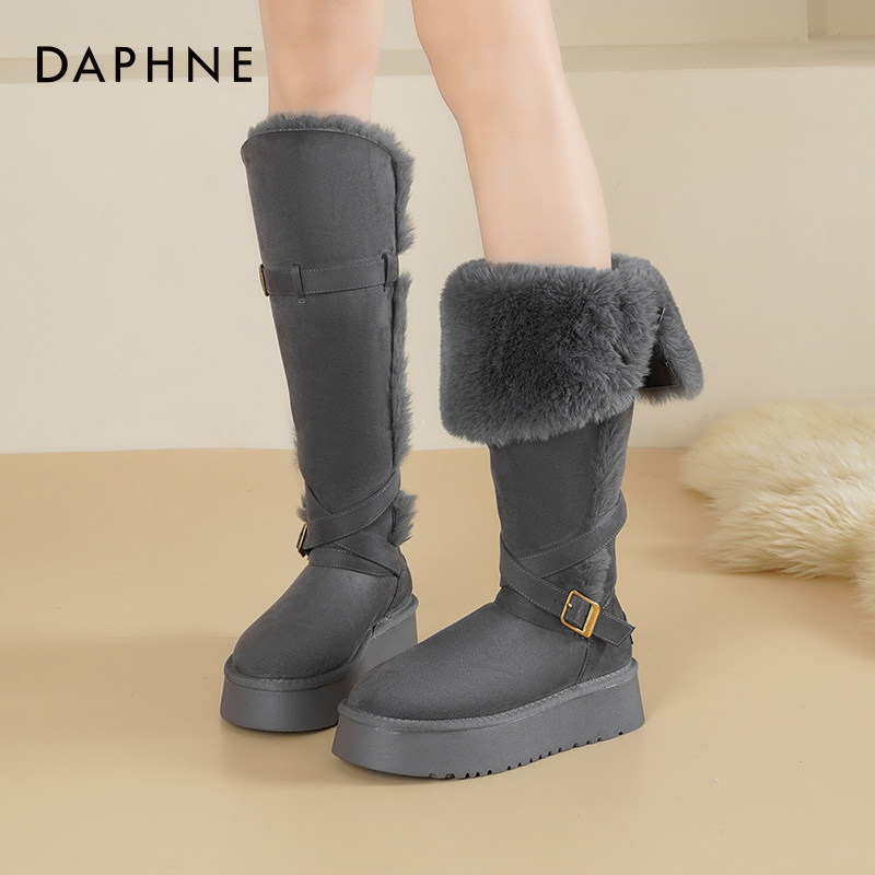 达芙妮厚底雪地靴翻毛保暖长靴女
