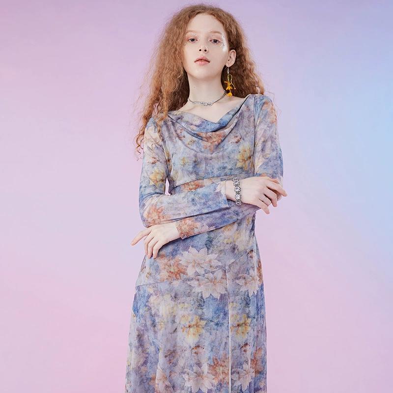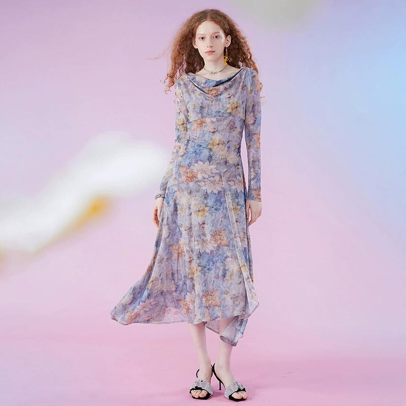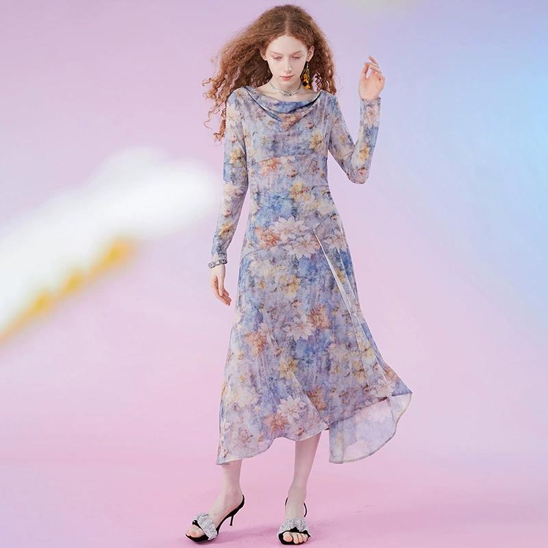 莲灿2025春夏款重磅垂感不规则修身显瘦连衣裙轻奢71EO325001