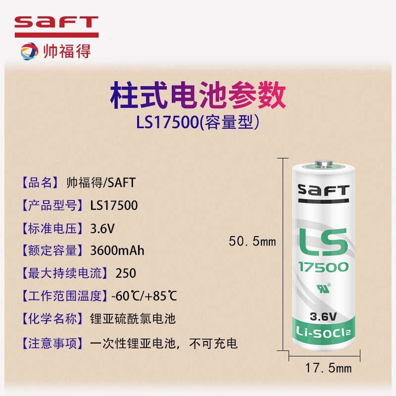SAFT帅福得LS17500PLC锂电池
