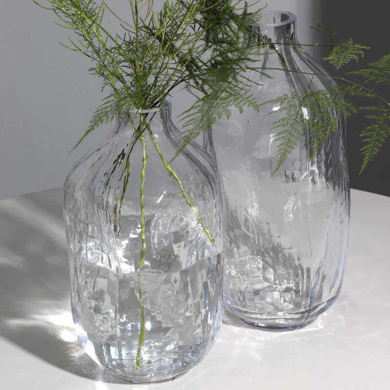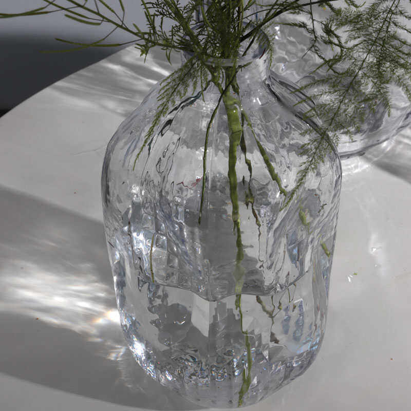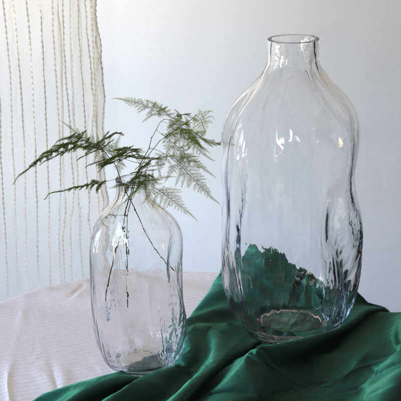 Kaheku侘寂风锤纹自然形态透明玻璃花瓶马醉木小口客厅落地大花器