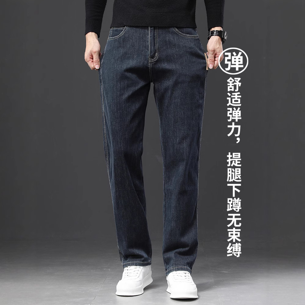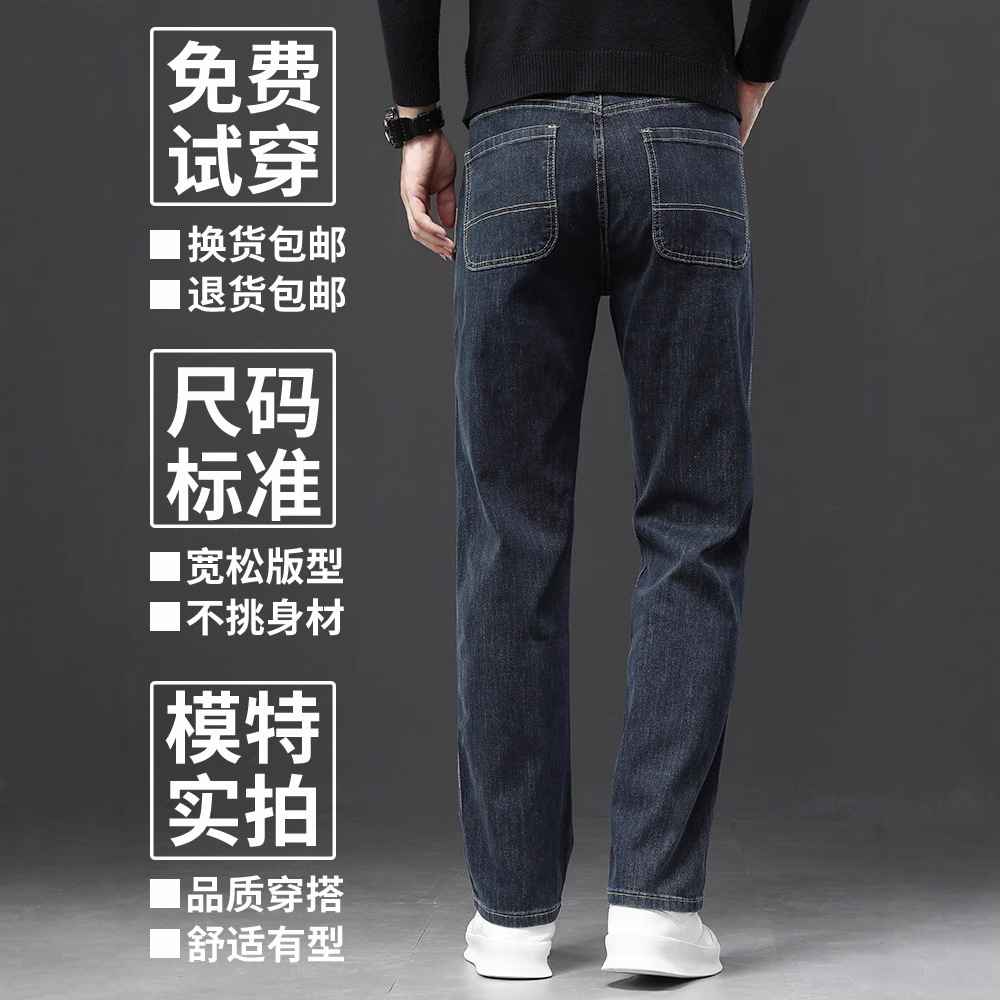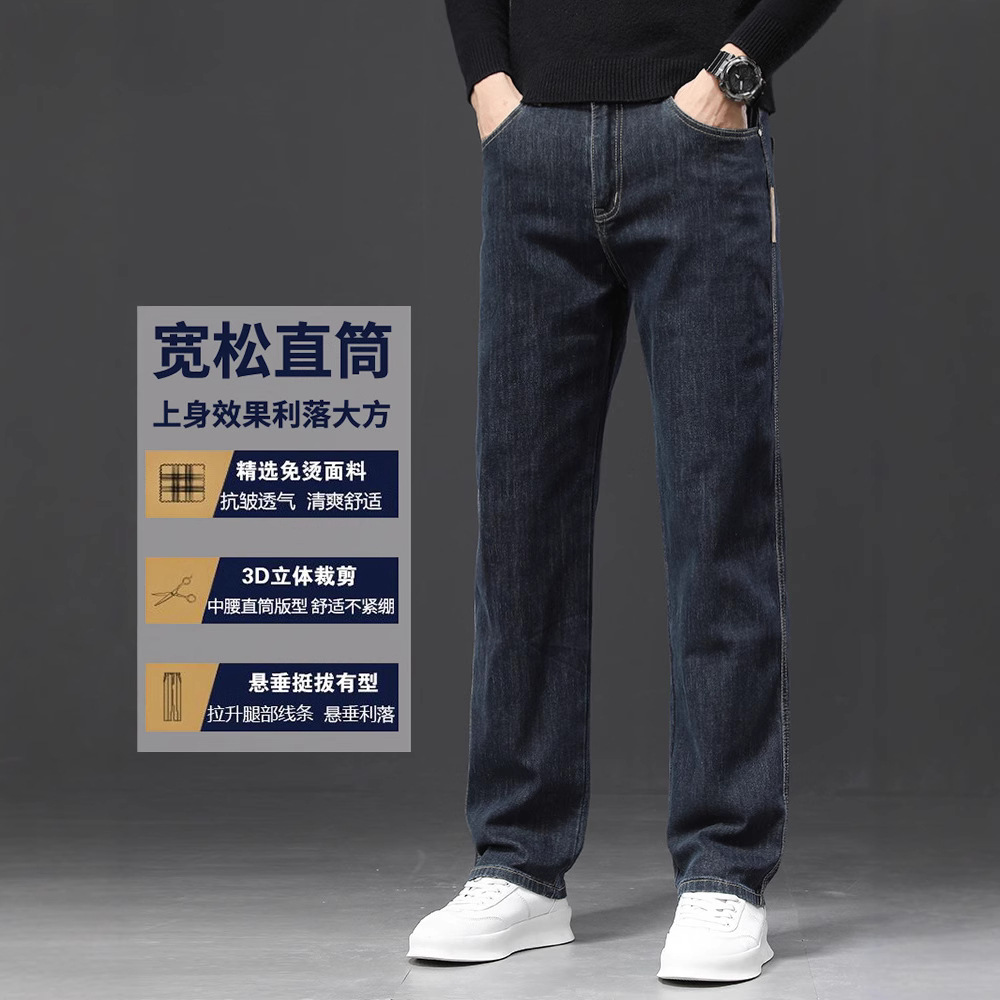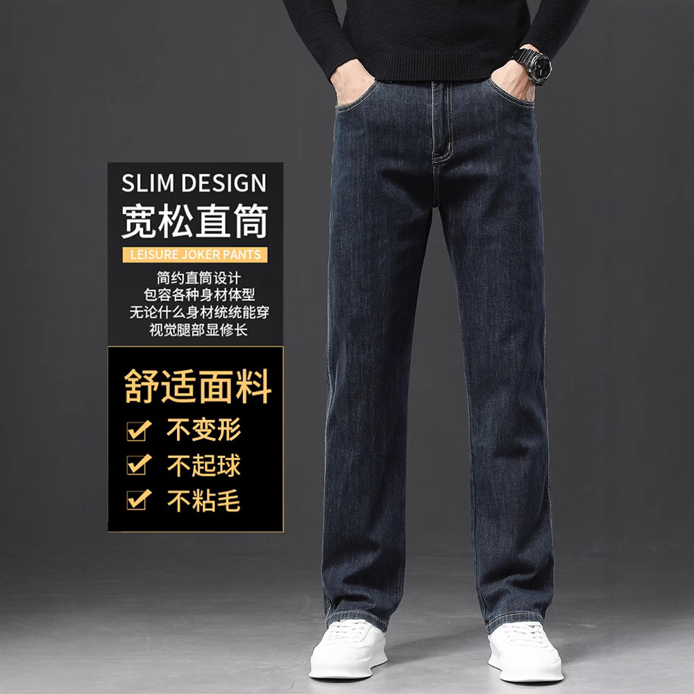 2024冬季新款宽松牛仔裤男士直筒男裤秋冬款潮牌大码弹力休闲裤子