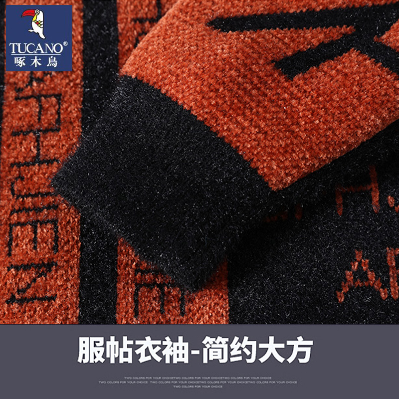 啄木鸟男士毛衣2025新款冬季宽松潮流拼接保暖高领打底衫内搭秋冬