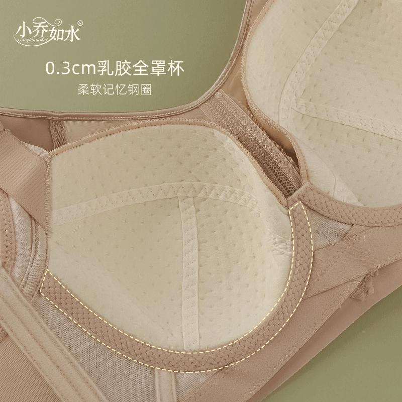 小乔如水1316乳胶内衣薄款防走光大胸显小光面全罩杯聚拢上托胸罩