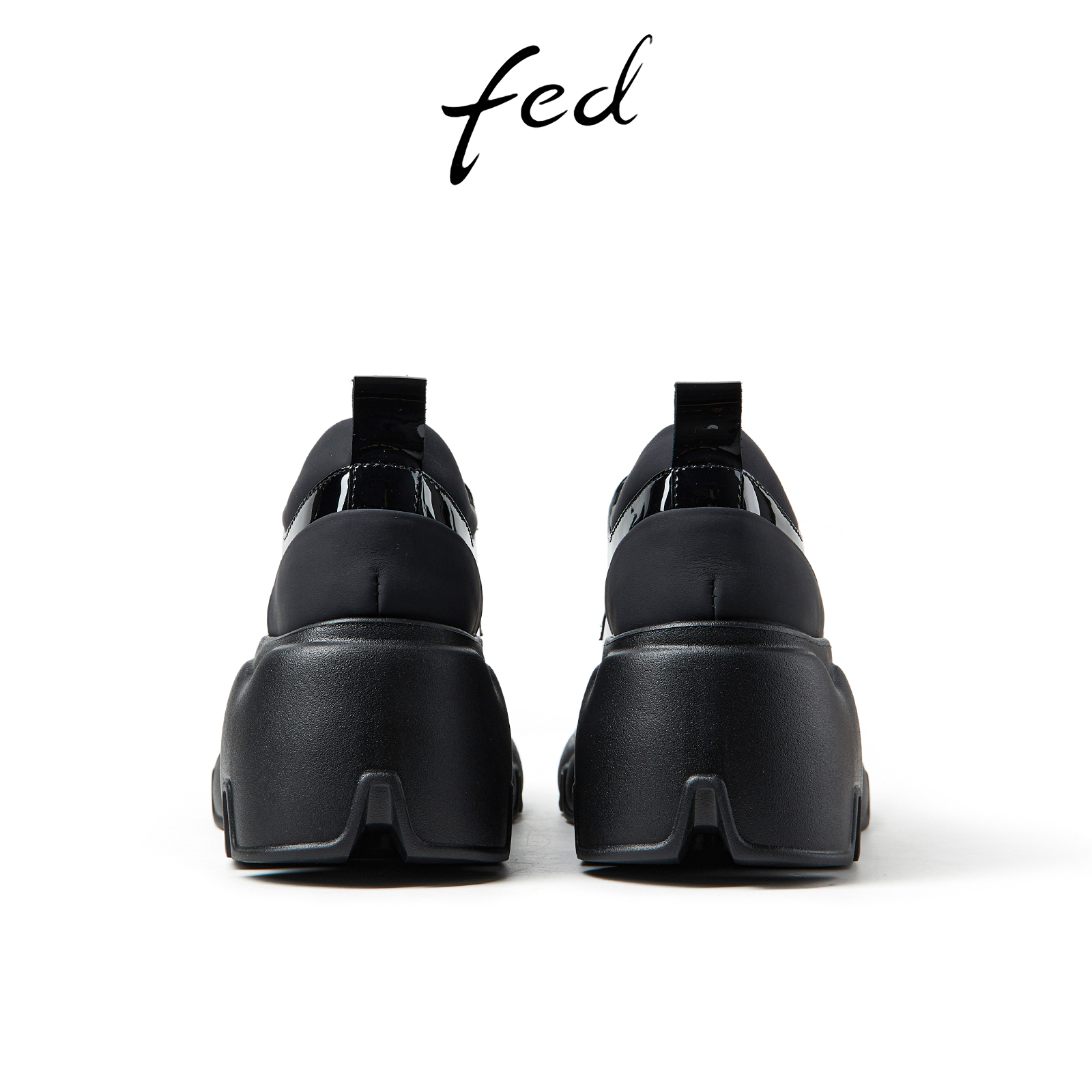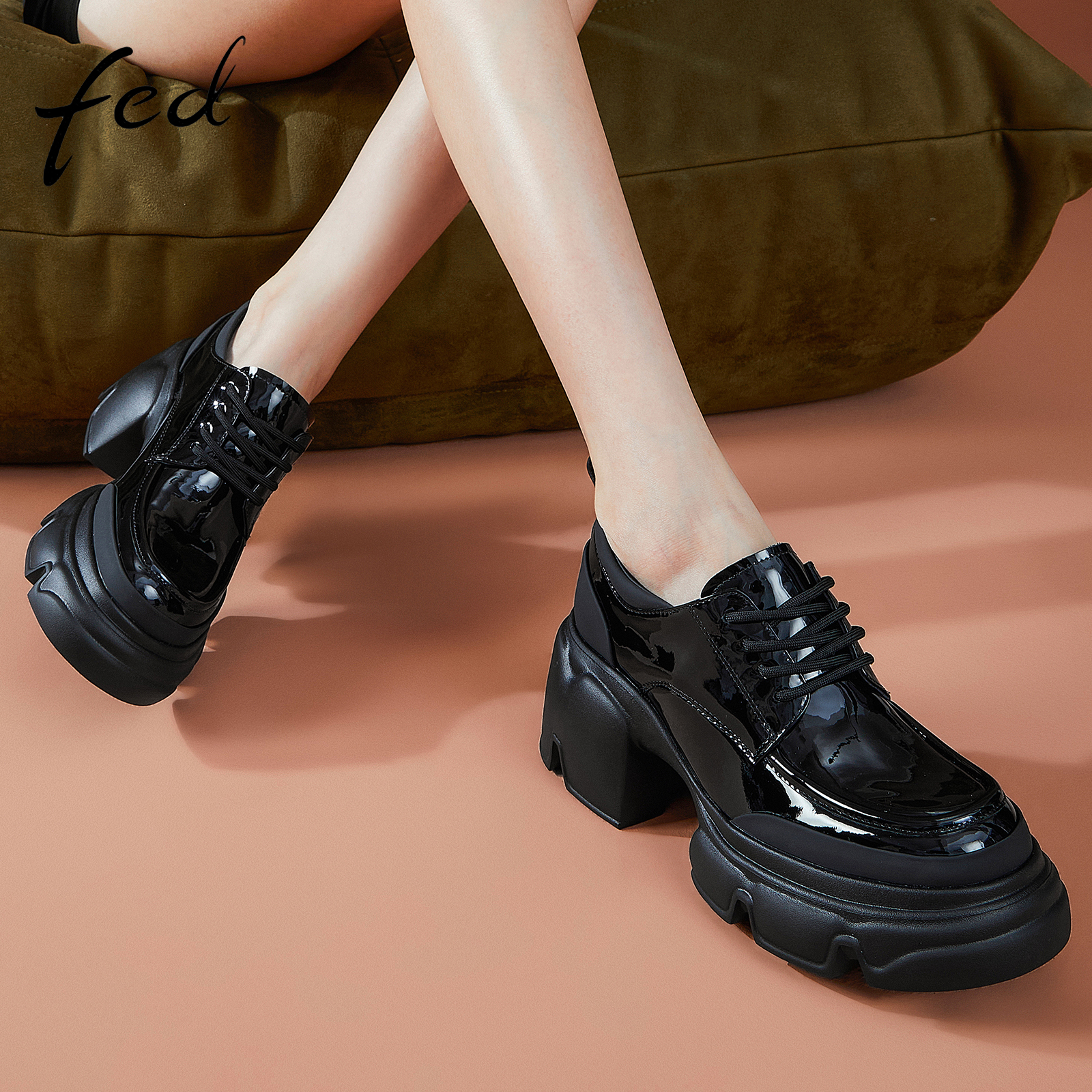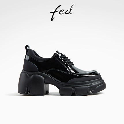 fed英伦风小皮鞋秋季新款女鞋黑色牛津鞋粗跟单鞋女款D0903-YA163