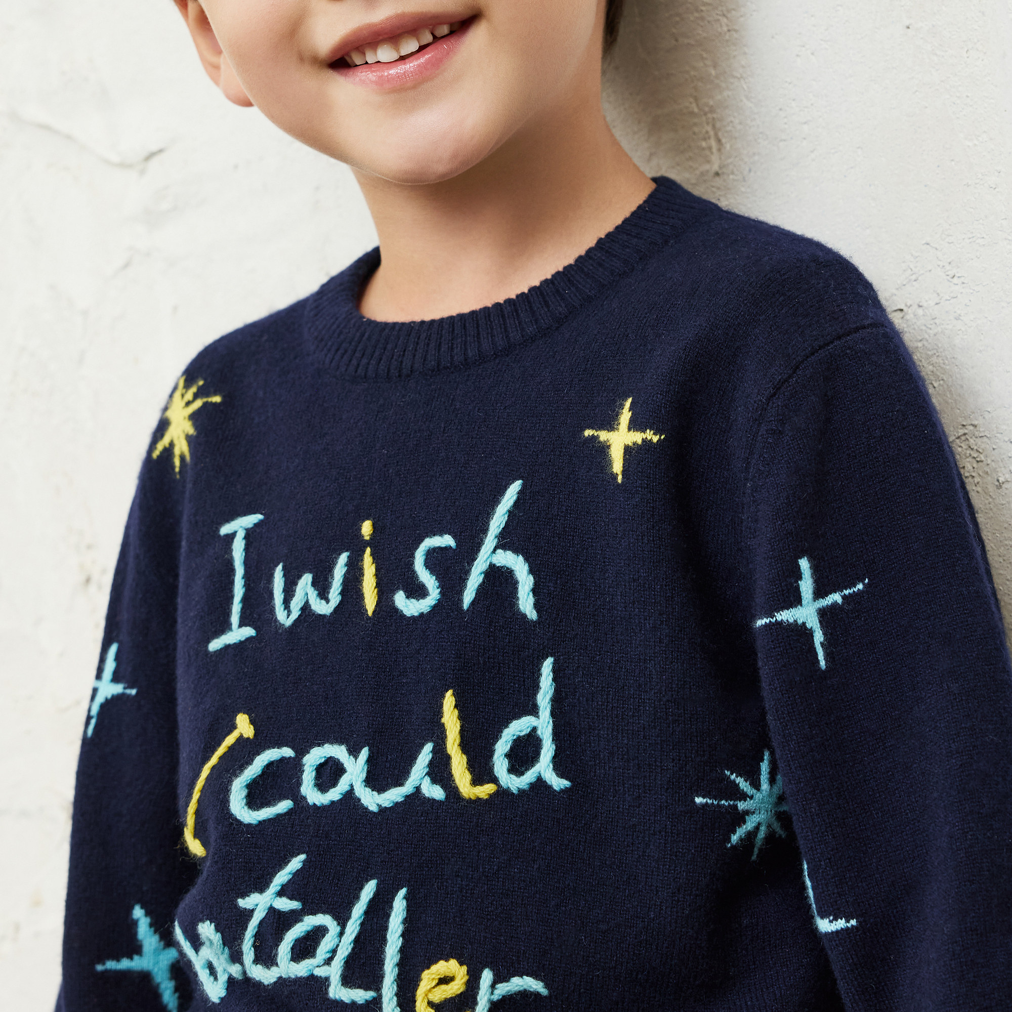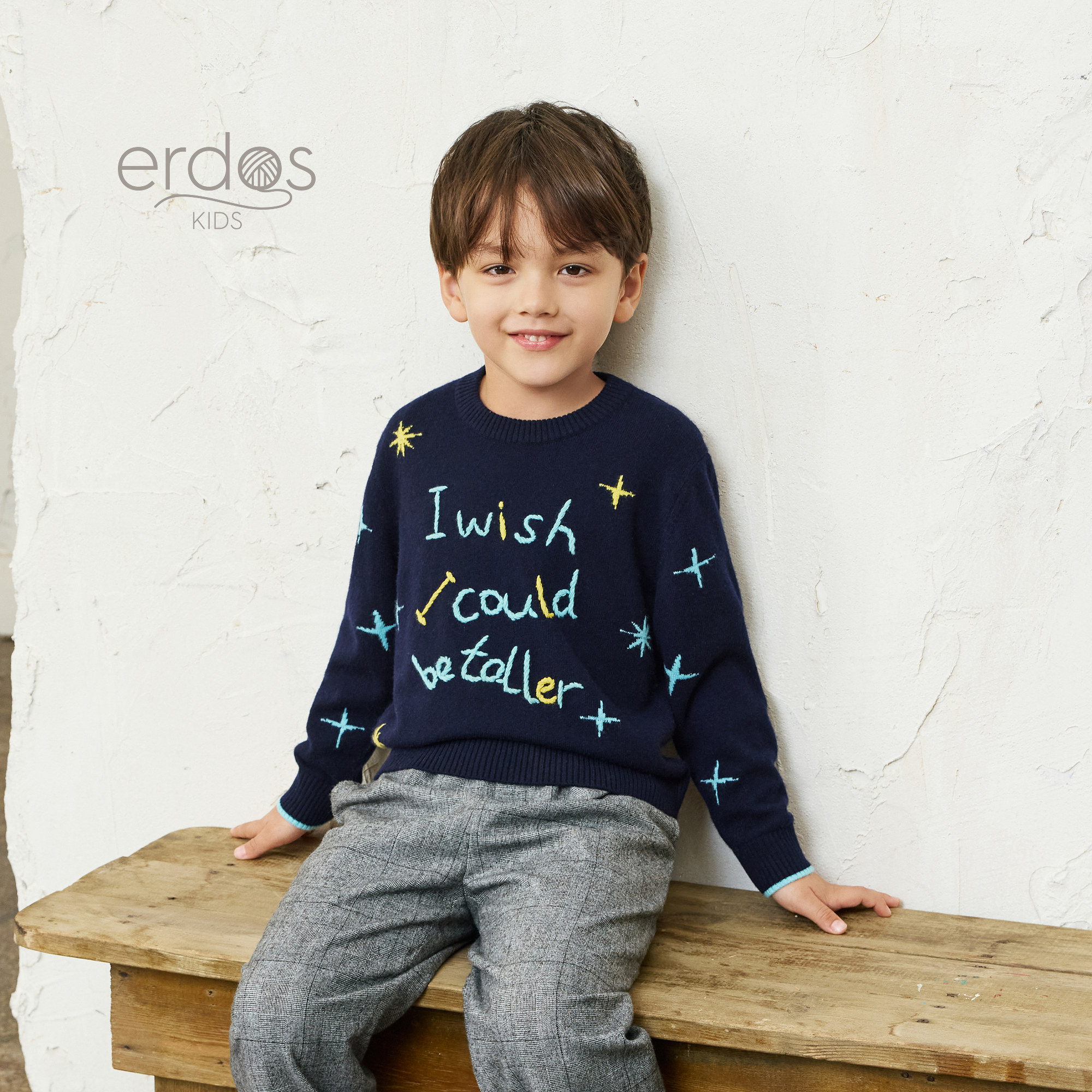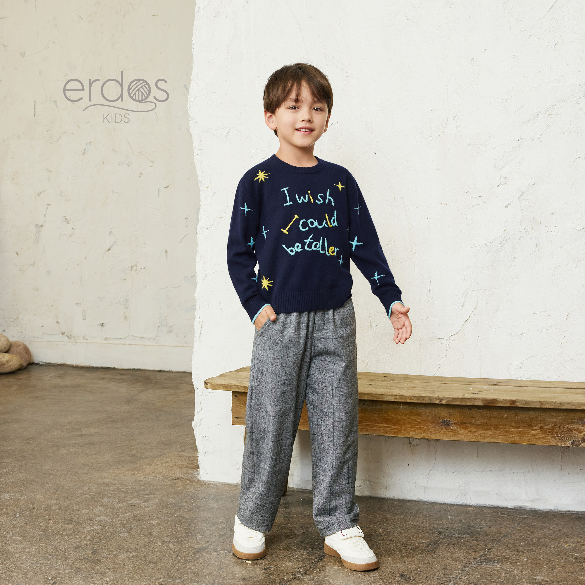 【100%山羊绒】鄂尔多斯童装25秋冬新品圆领装饰提花儿童针织套衫