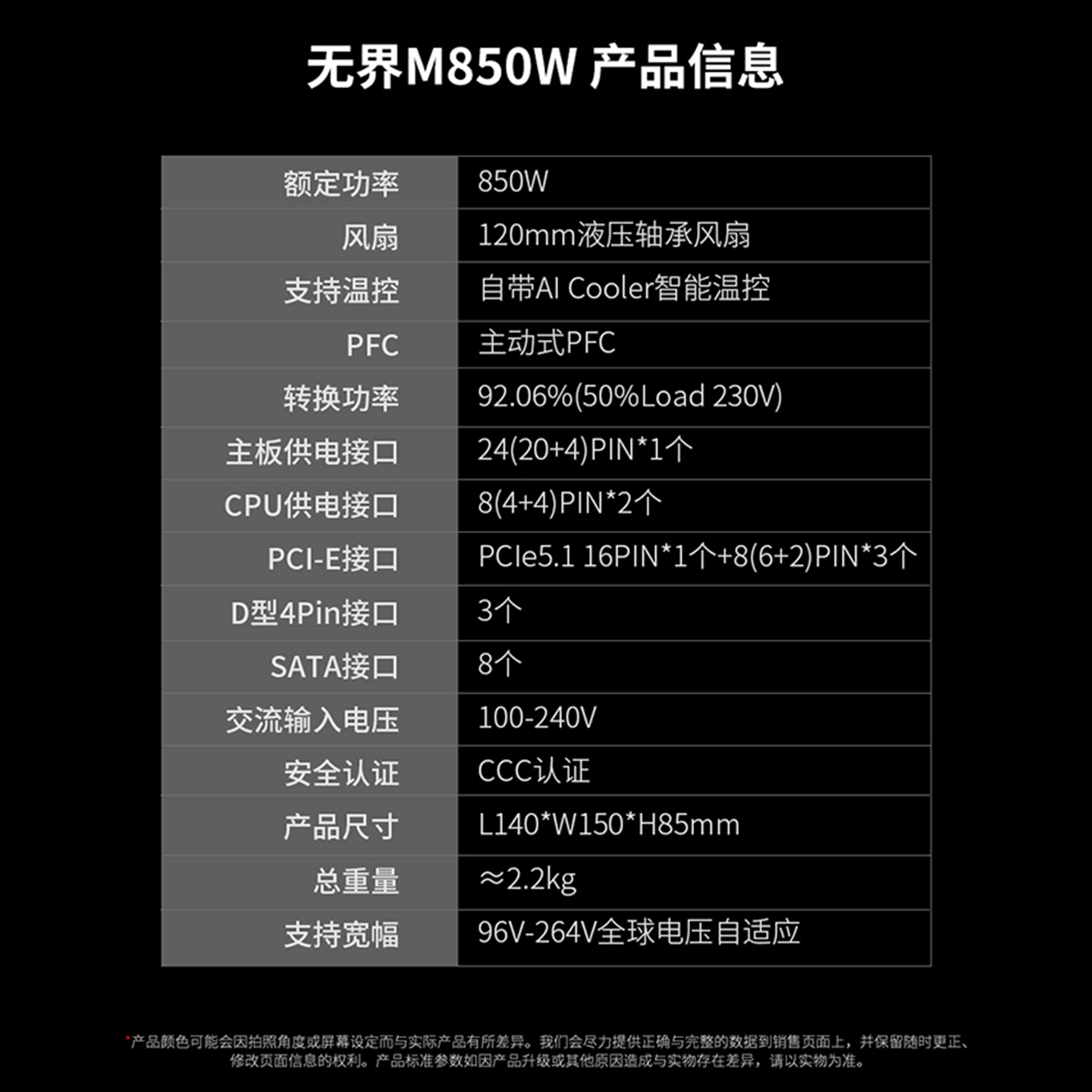 鑫谷无界M850W电脑电源750W金牌全模组台式机主机650W电源ATX3.1