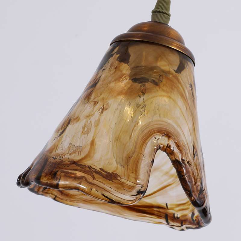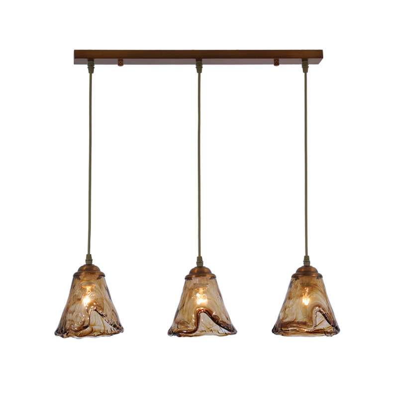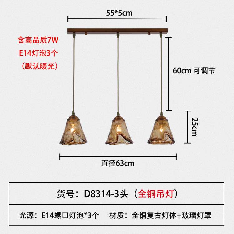 美式全铜餐厅吊灯复古田园个性朝下长形餐桌玻璃灯具