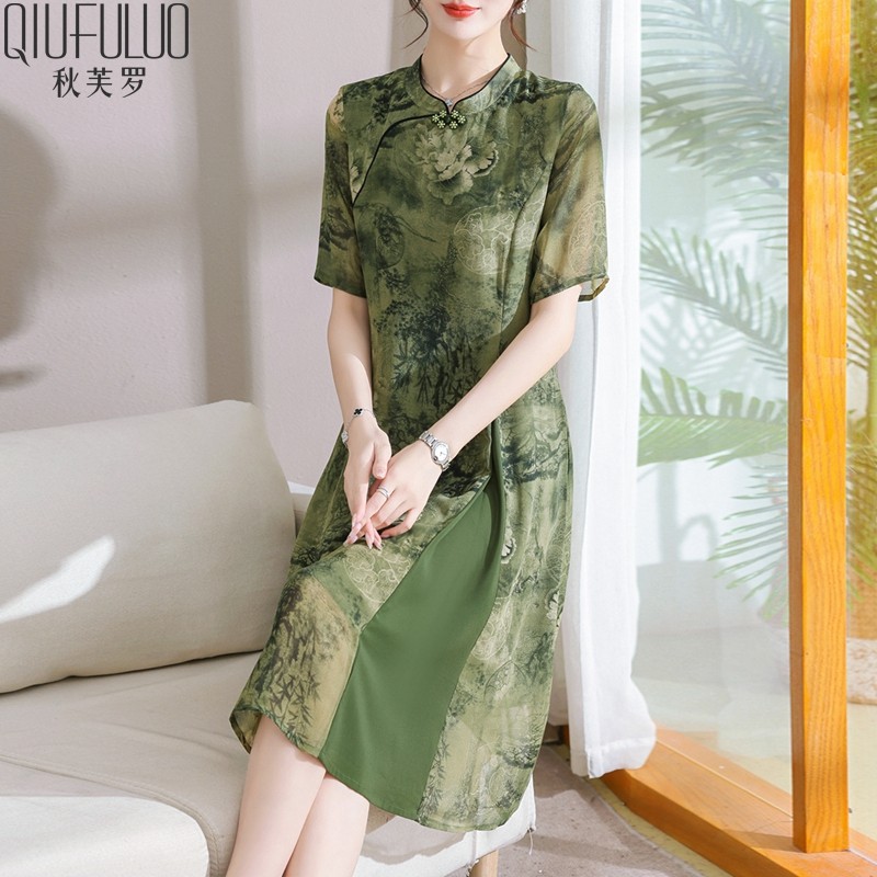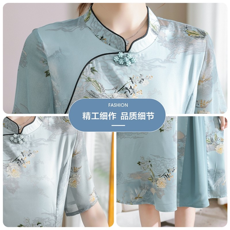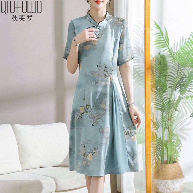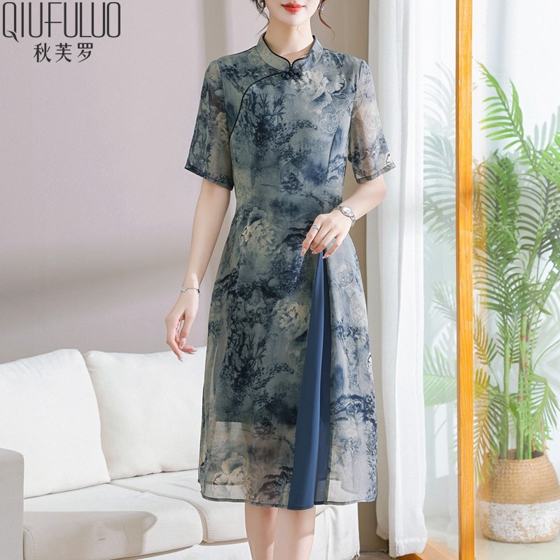 妈妈夏装改良旗袍时尚优雅连衣裙新款洋气中老年女装宽松气质裙子