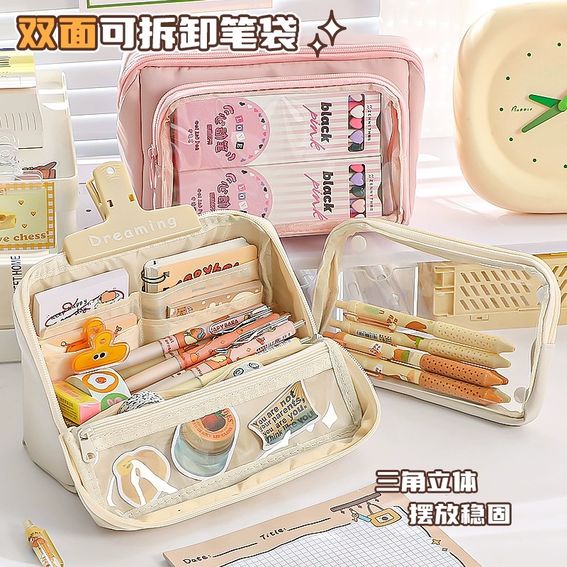 可拆卸痛包笔袋2025新款超火透明大容量铅笔盒ins日系初中高中生高颜值多层多功能文具收纳袋站立式九层女孩