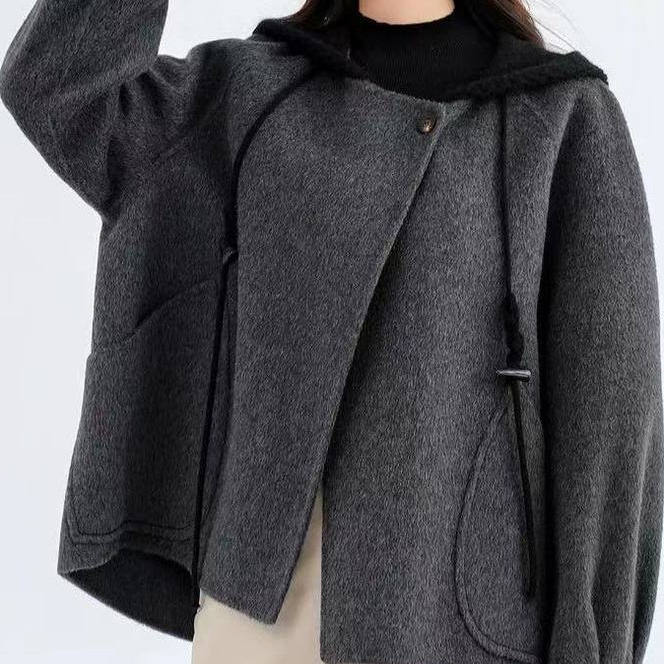 2025秋冬新款双面羊绒大衣女短款连帽宽松气质显瘦百搭羊毛呢外套