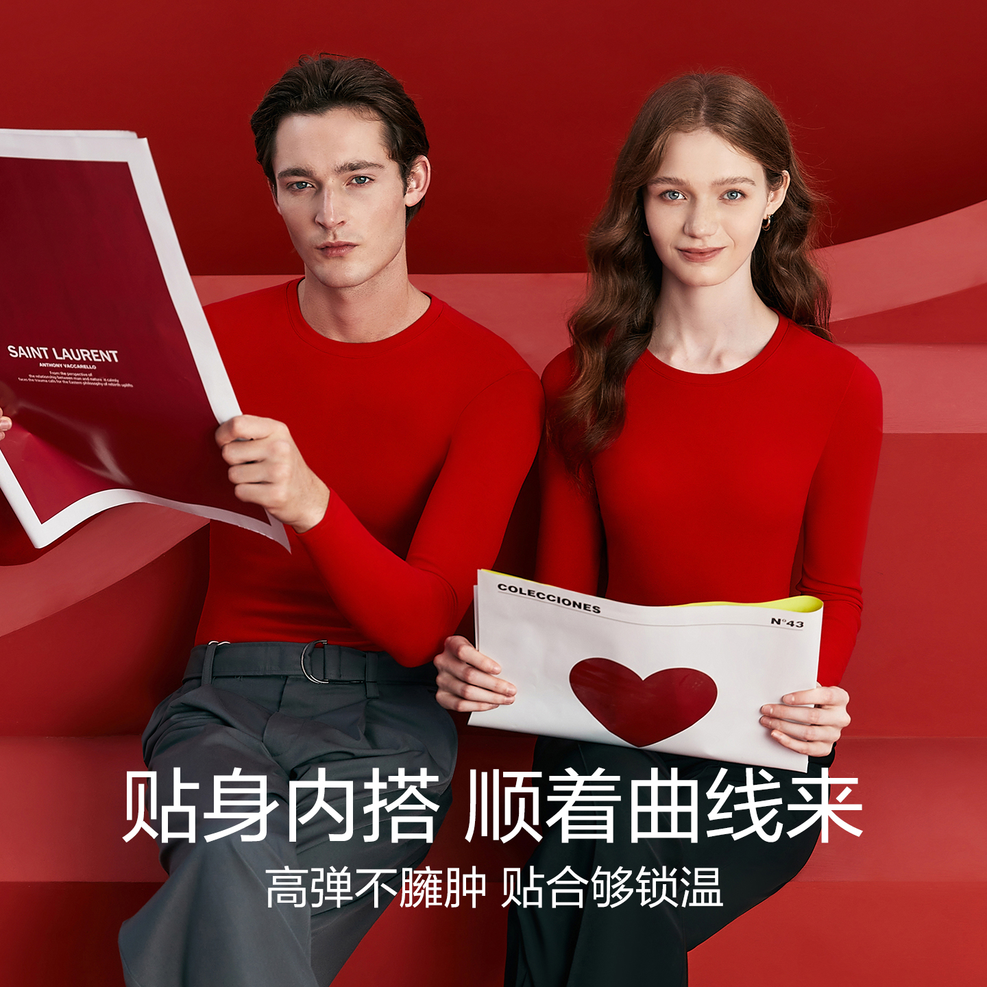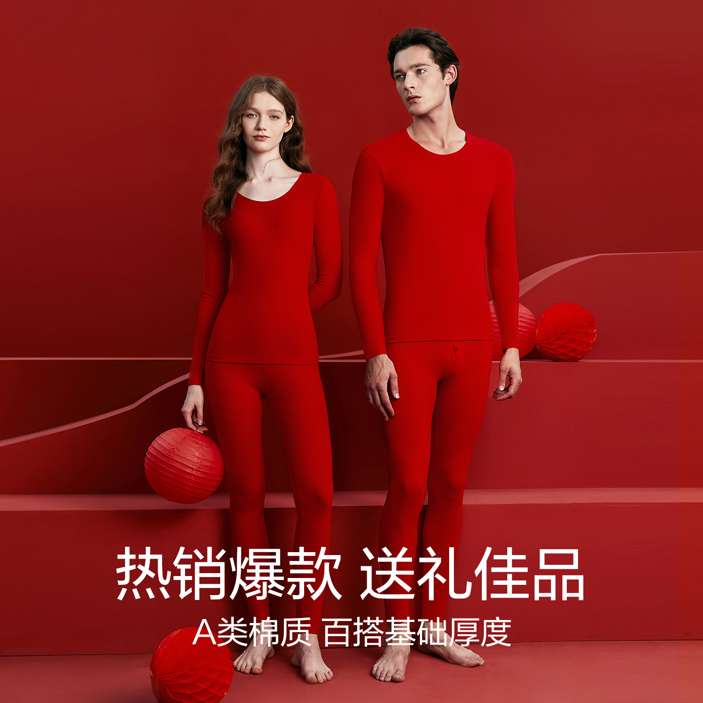 红豆红本命年大红色内衣内裤礼盒装新婚结婚新年保暖秋衣秋裤套装