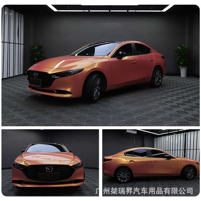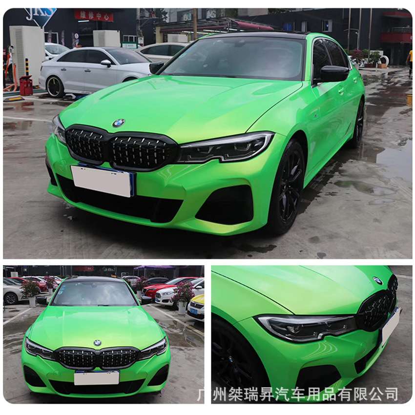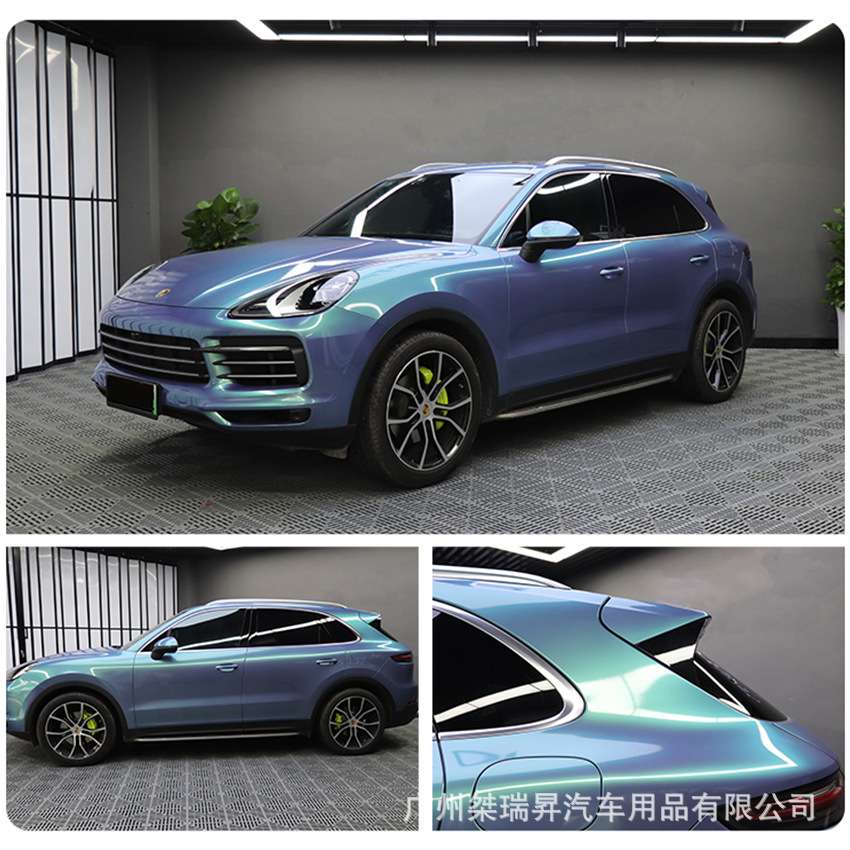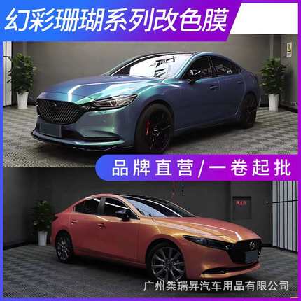 汽车改色膜幻彩珊瑚荧光黄绿双色冰雪蓝粉全车身贴膜渐变孔雀绿橙