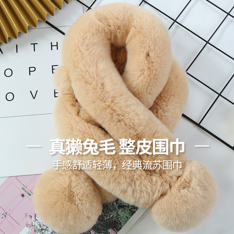 獭兔毛围巾女冬季保暖百搭球球围脖韩版成人情侣男女可爱学生流苏