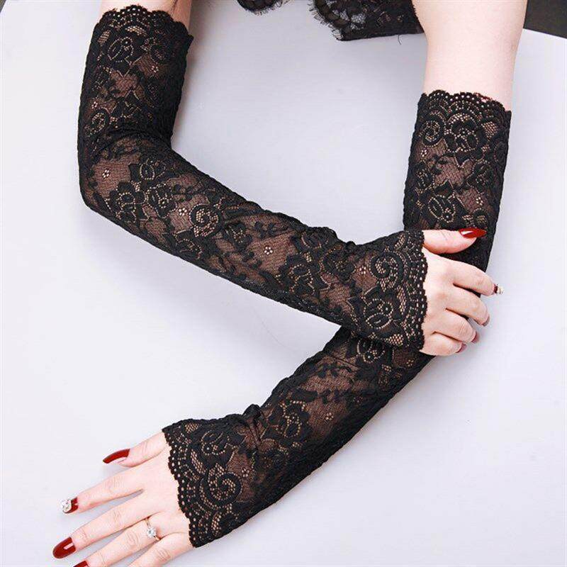 日本蕾丝长款护腕套女士遮疤纹身刺青护肘胳膊手臂袖套防晒夏季假