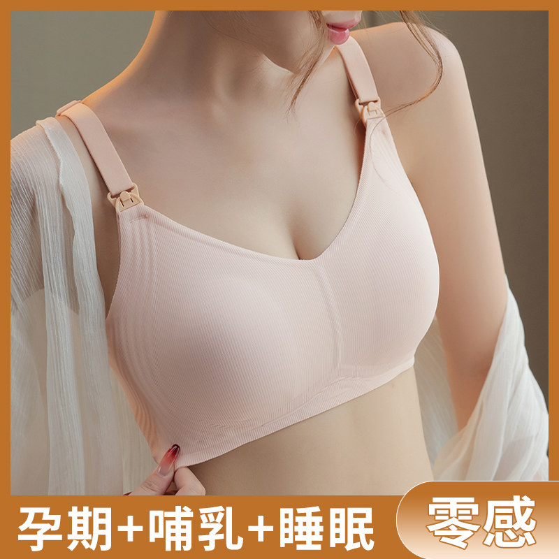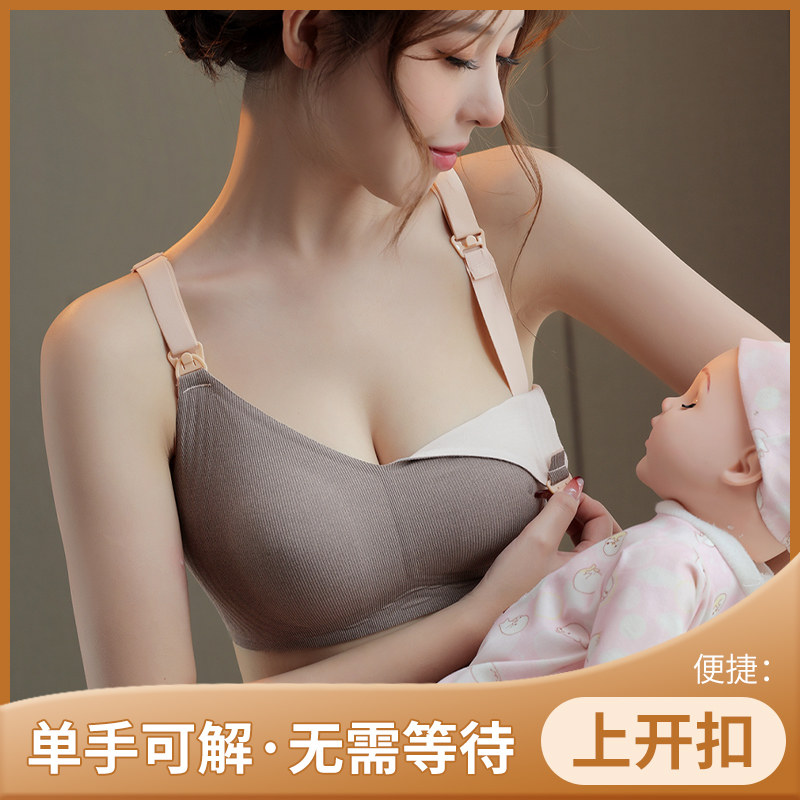 便携无钢圈孕妇哺乳内衣女聚拢上开扣防下垂款收副乳产后喂奶文胸