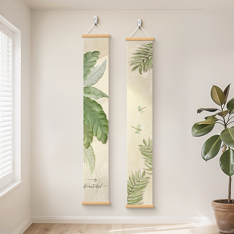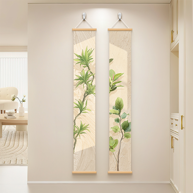 家大业大玄关细长条组合画原木奶油风绿植光影装饰画清新绿色挂画